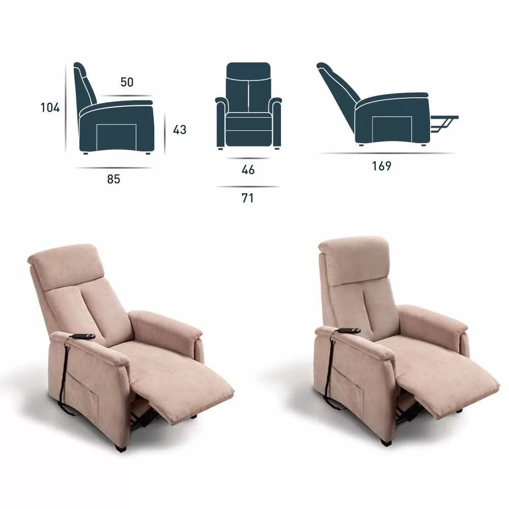 The Via Venezia lift chair has a 2-motor mechanism characterized by a motorized relaxation movement with the aid of a remote control.