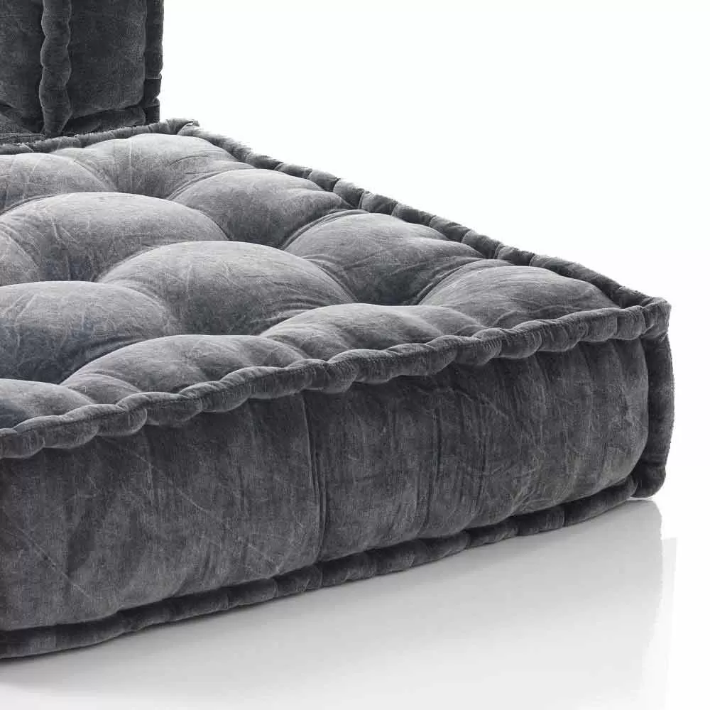 - 100% cotton velvet upholstery in gray;