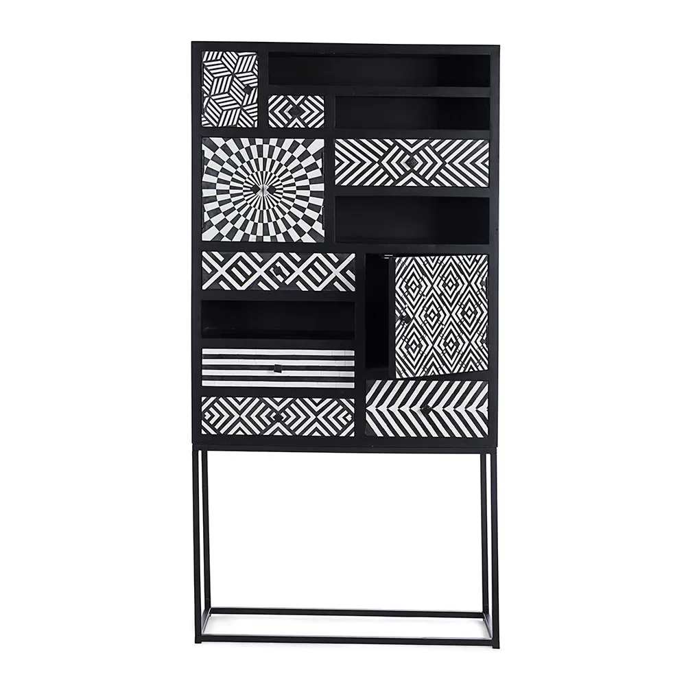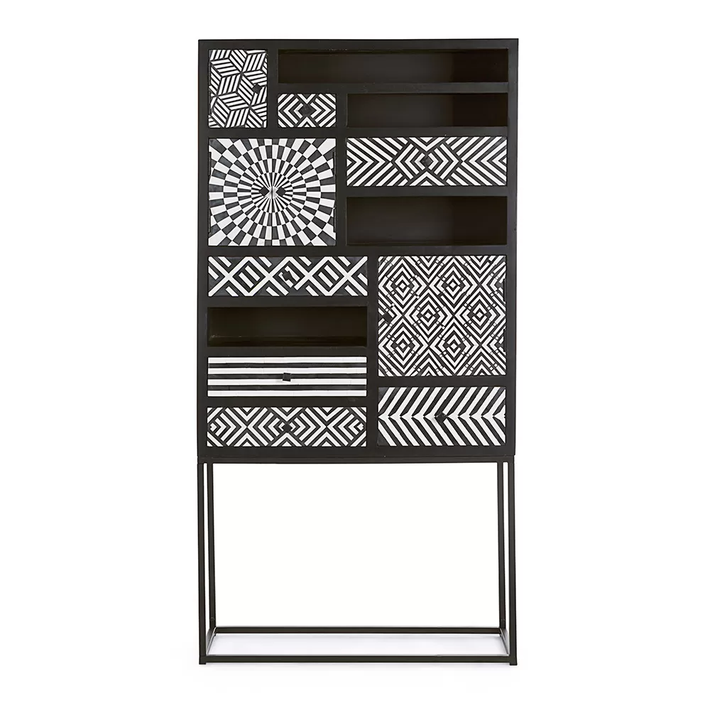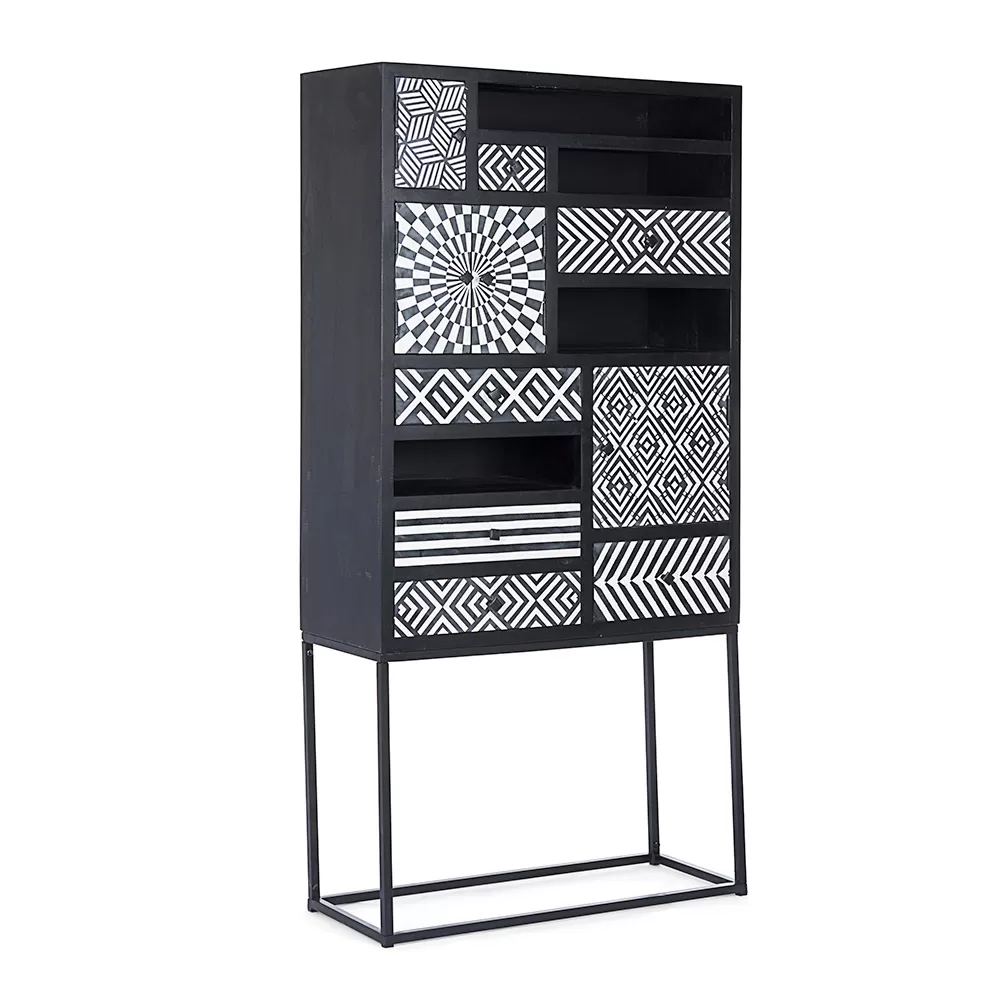 Mango wood sideboard with 4 doors and 6 drawers in ethnic style mosaic.