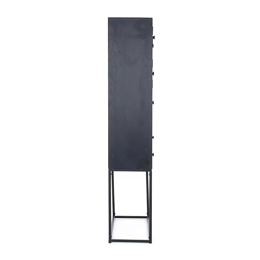 This design sideboard for the living room features a mango wood structure with MDF back, doors and drawers and steel knobs.