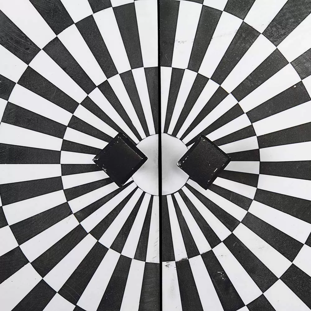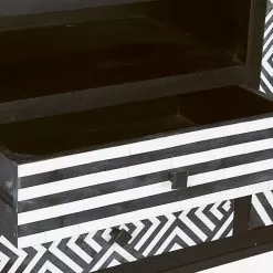 The 4 doors and 6 drawers are made with mosaic processing through the use of small resin blocks with a nitrocellulose-based finish.