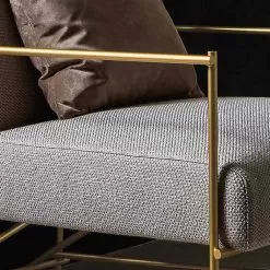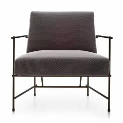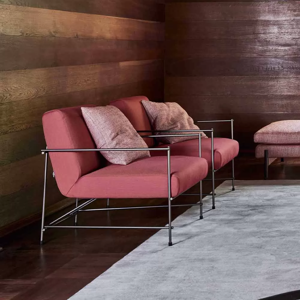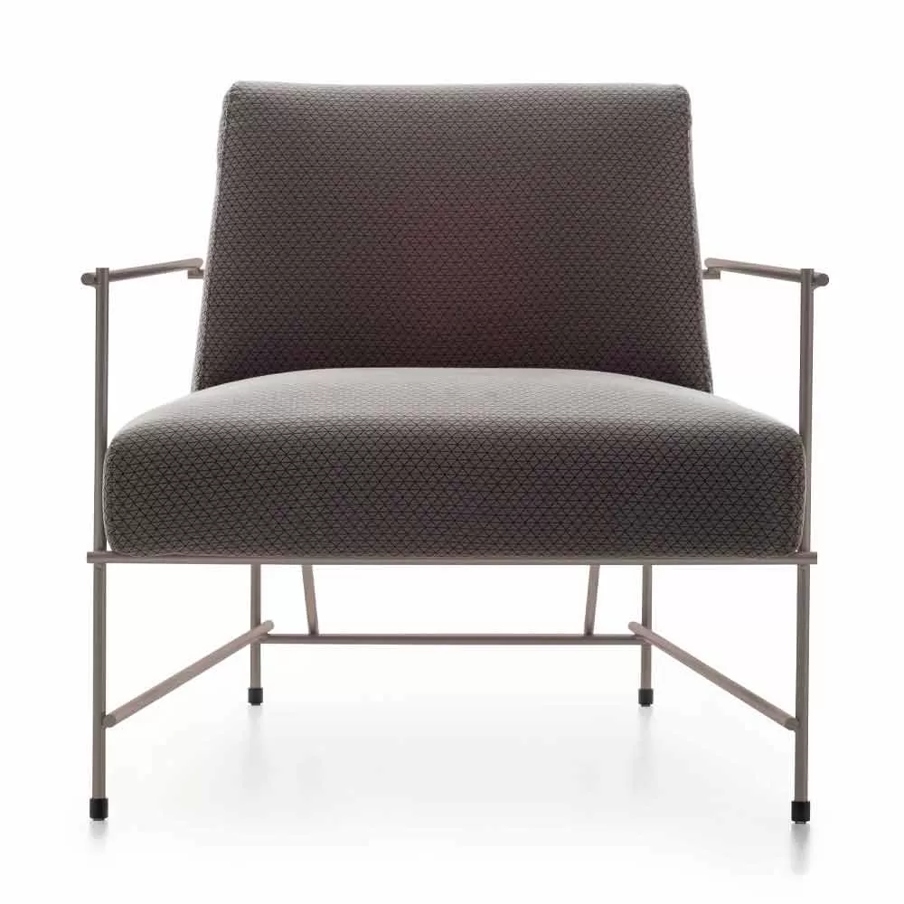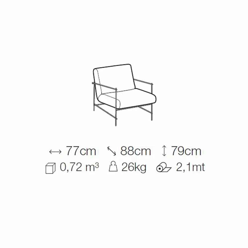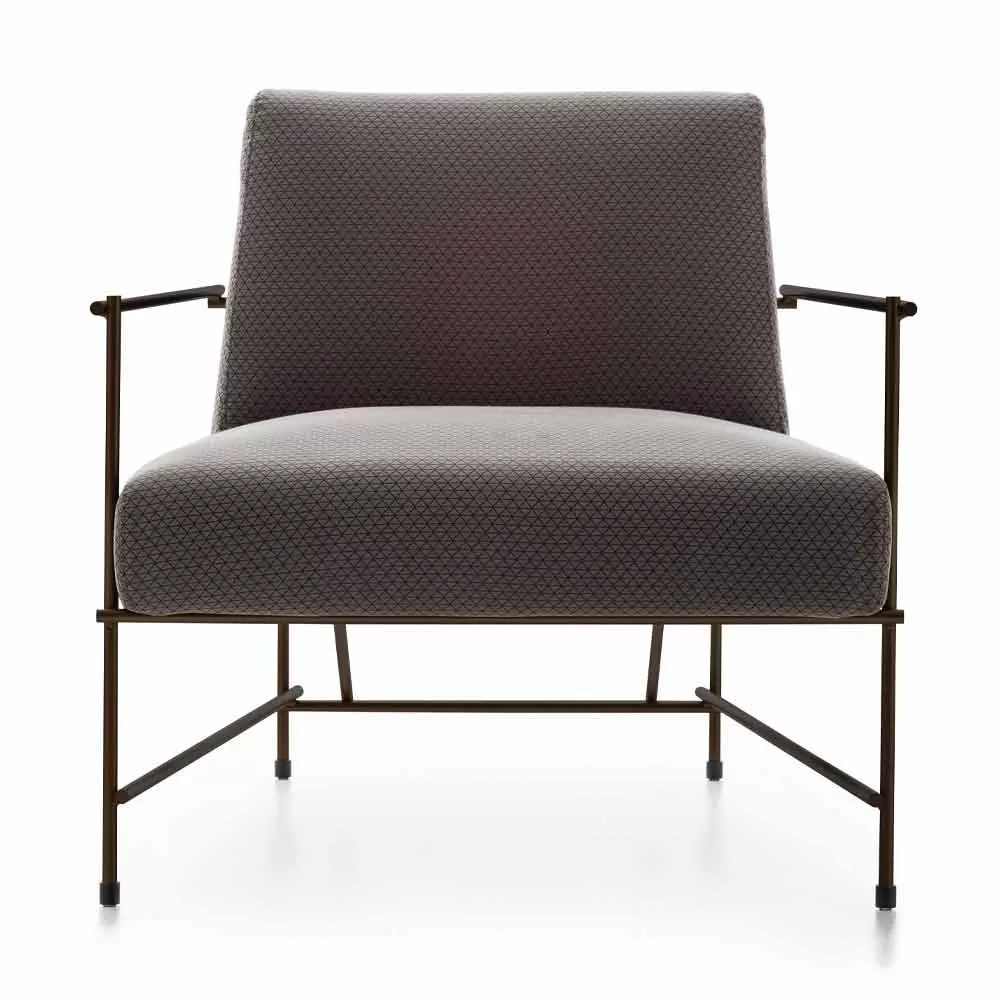 Modern living room armchair made in Italy with painted metal structure , shell in blockboard wood panels and cushions upholstered in non-deformable polyurethane foam covered in Tecnoform. Seat and back in completely removable fabric.