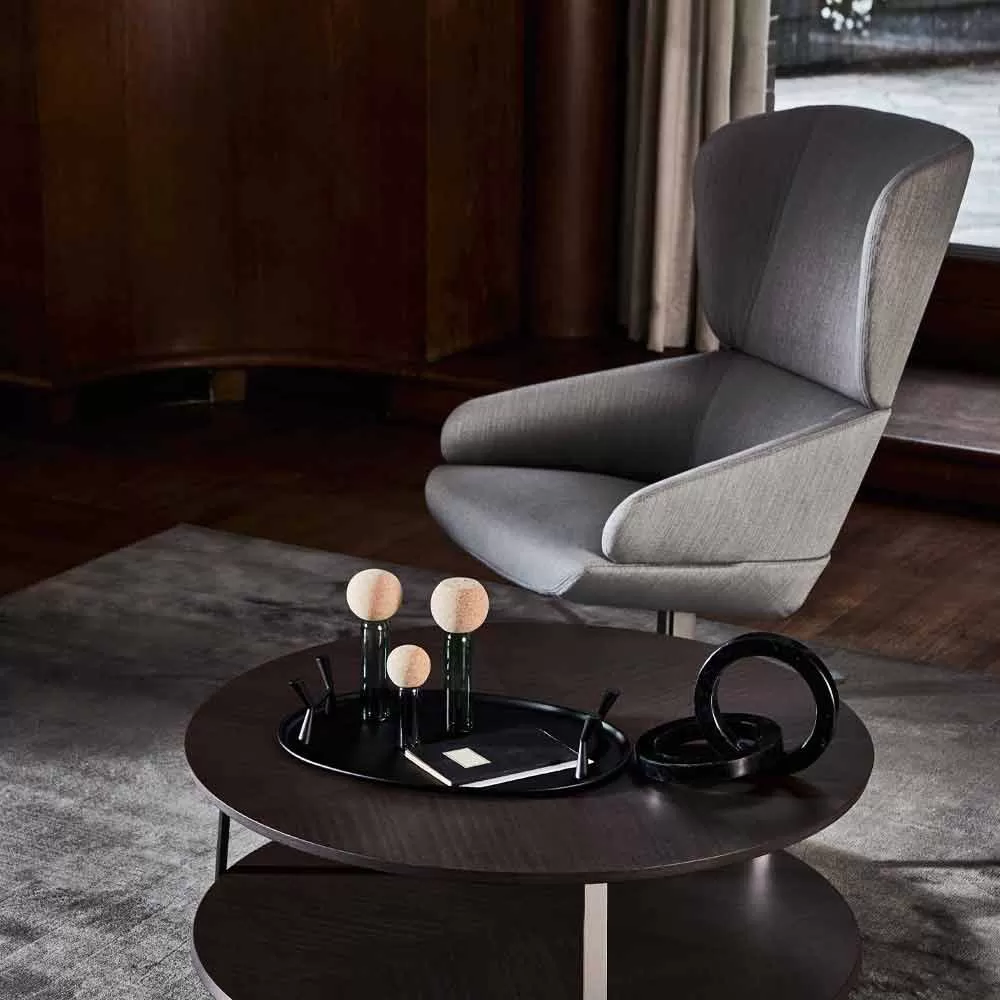 Living room armchair upholstered in fabric with swivel base, high quality Made in Italy.