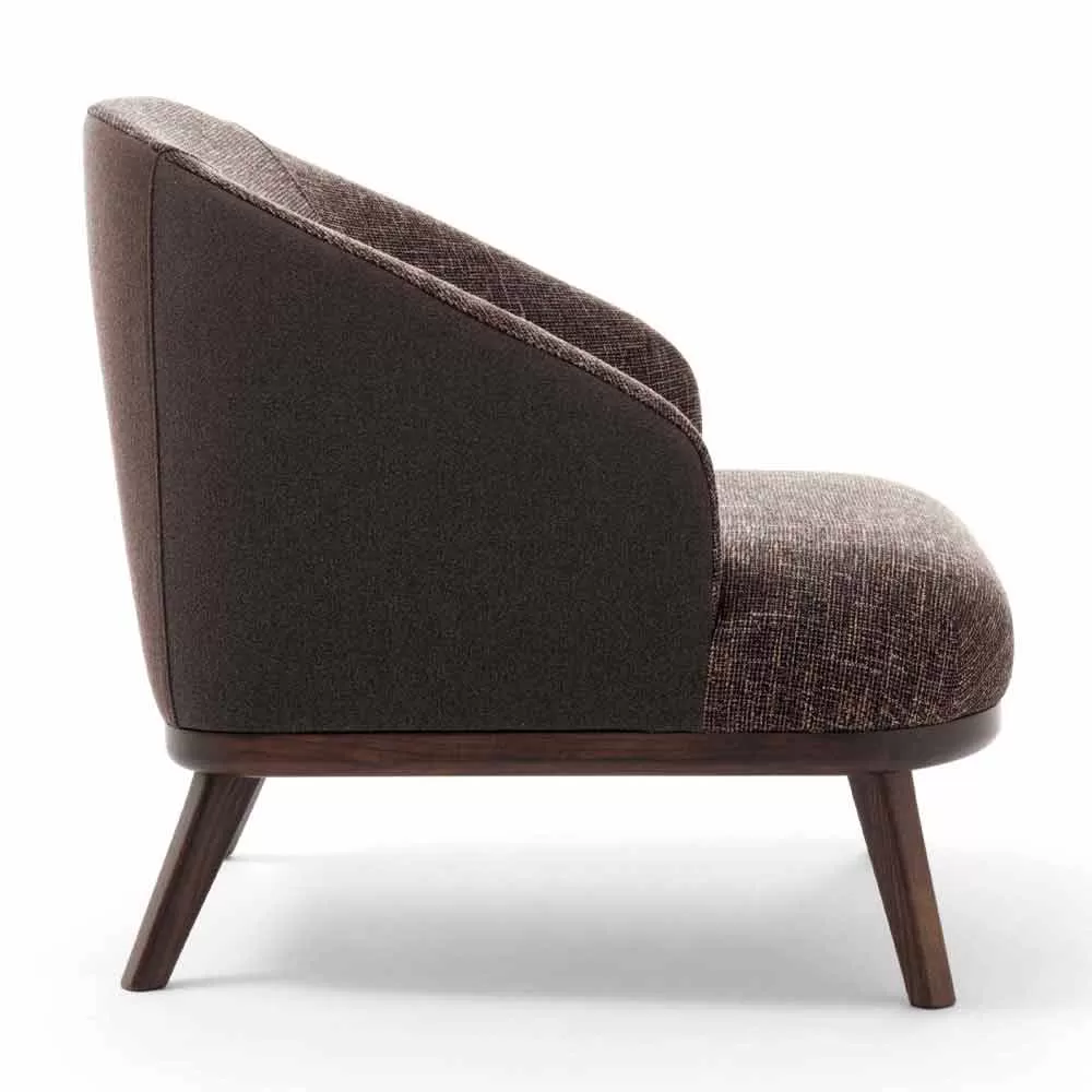 Living room armchair in fabric with wooden base Made in Italy, luxury.
