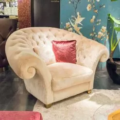 Handmade armchair, characterized by a modern design and a comfortable padded seat with a tufted back.