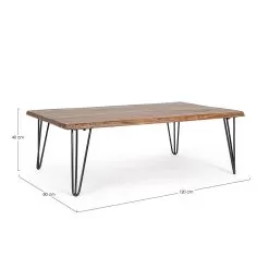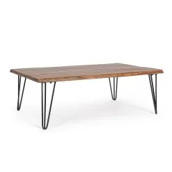 Coffee table for the living room in steel and hand-crafted acacia wood.