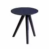 Top in acacia wood (original trunk sections), legs in epoxy powder coated steel with nitrocellulose-based finish.