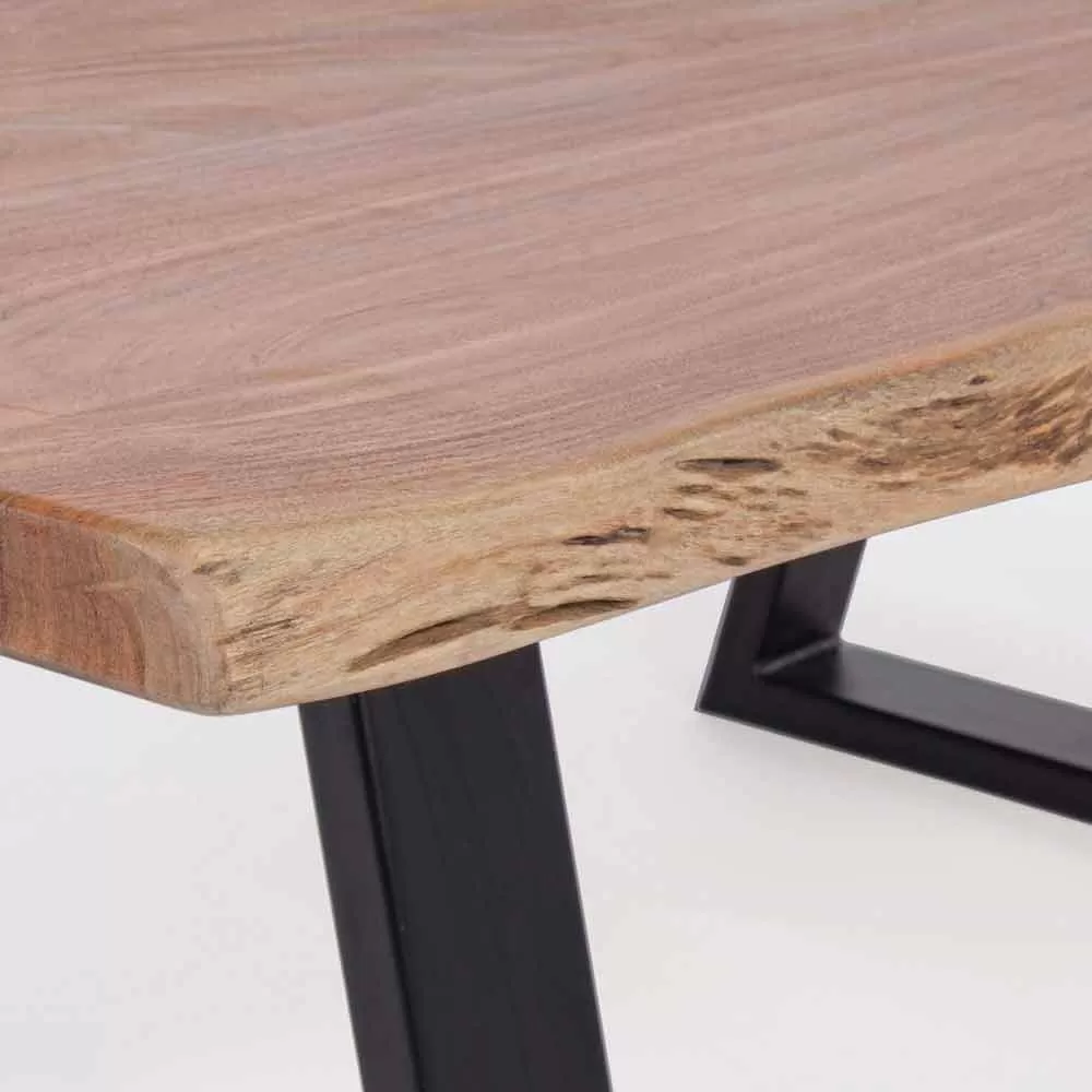 Modern design coffee table in acacia wood and steel.