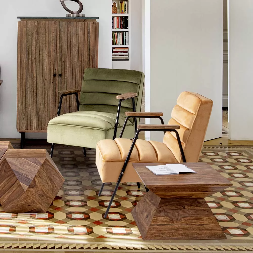 Coffee table for the living room with a pyramidal design in sheesham wood.