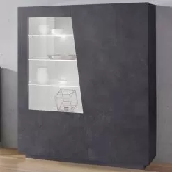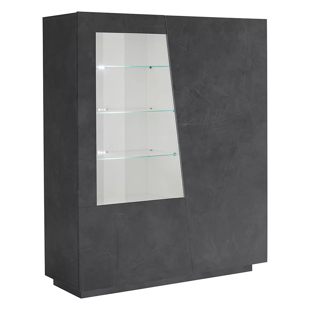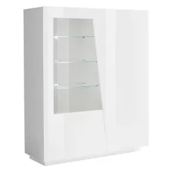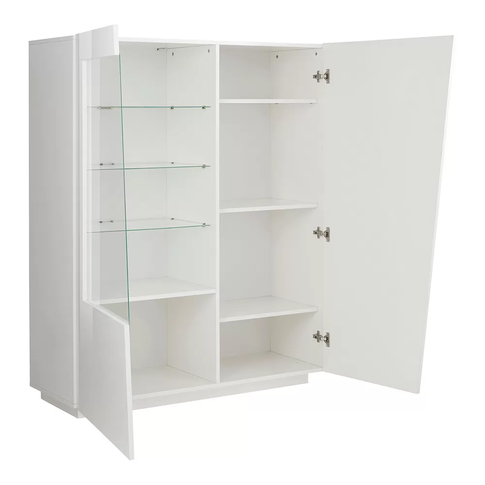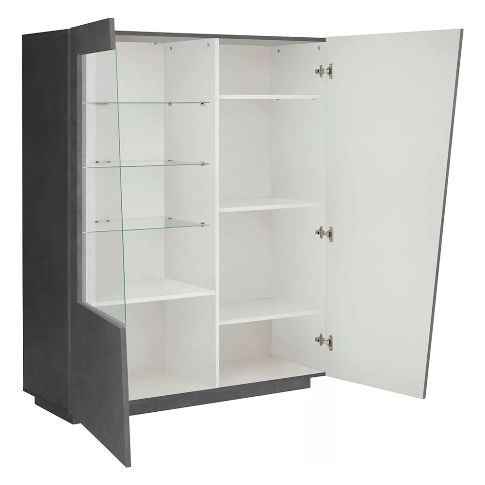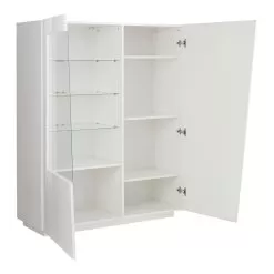 The sideboard is made up of 2 hinged doors: one closes 4 storage compartments , the other has a part made of glass that acts as a showcase with 3 glass shelves . It is made of melamine and 100% Made in Italy . This product lends itself to completing the decor of any living area thanks to its simple and elegant finishes that give the room a unique and unforgettable touch. The material used guarantees quality and resistance even over time.