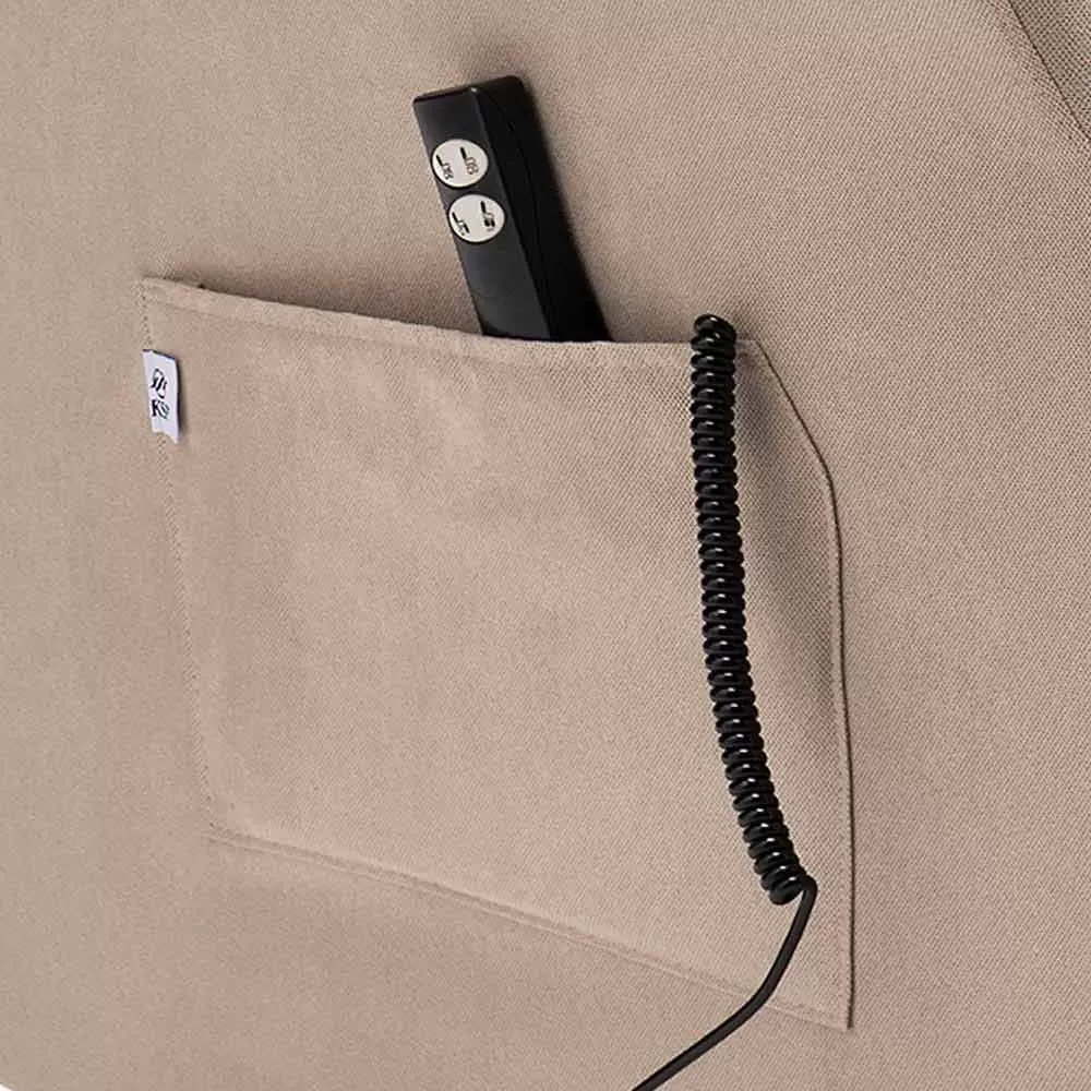 The Lift and Relax technologies allow you to accompany the movements when you sit and stand up. The practical remote control allows you to independently adjust the position of the backrest and footrest , according to your relaxation needs. The Roller System has 4 wheels activated by a footrest lever, positioned on the back of the chair, which allow easy movement within the home , without effort.