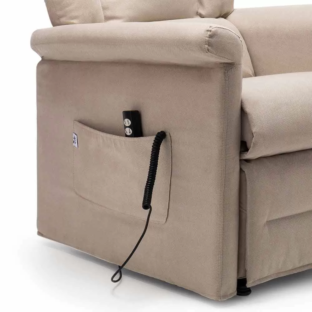 This reclining chair is equipped with a lifting system (Lift) or an electric motor that allows the chair to be lifted. The Lift system is particularly useful for people with mobility problems as it allows you to get up or recline safely. The lift function, integrated in the lift chair, allows the person sitting on the chair to be accompanied in the movement to be able to get up in total safety .