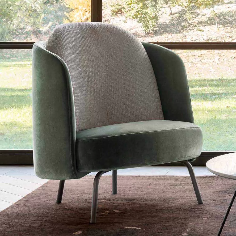 Two-tone fabric armchair with metal legs Made in Italy, luxury.
