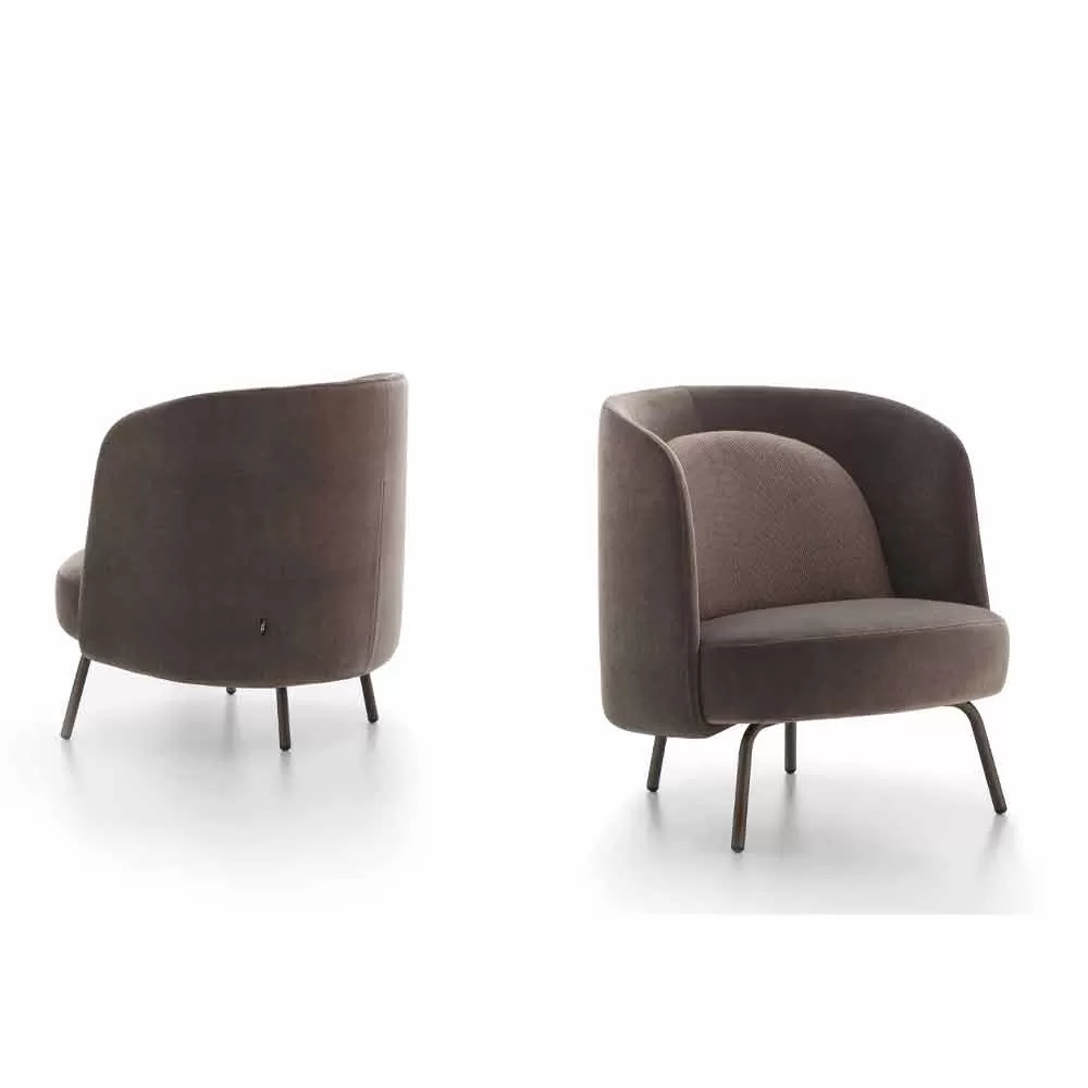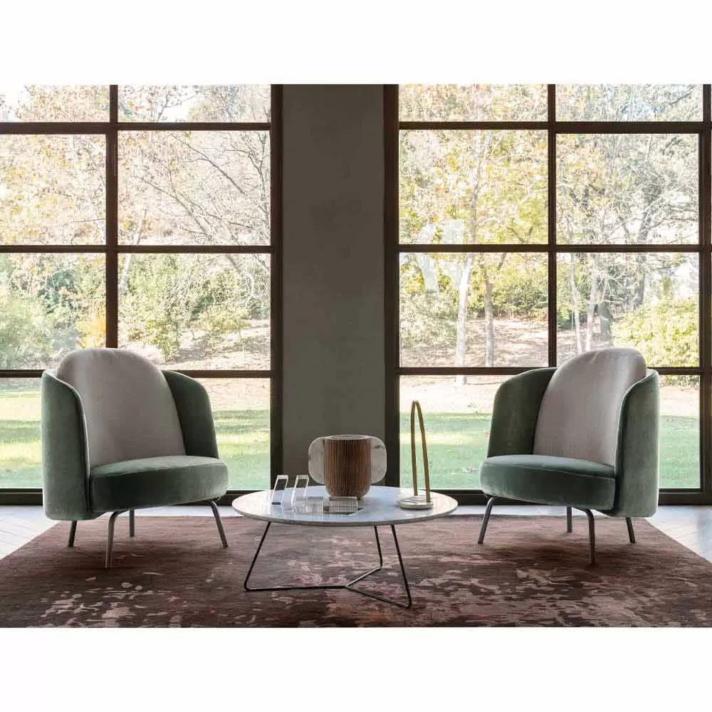 Soft and refined curves give life to an elegant and feminine seat ideal for enriching the furnishings of your living area with a graceful touch while maintaining a discreet and timeless style. The shell has a rounded shape ideal for recreating the feeling of a soft embrace, thus offering a comfortable and welcoming seat and representing a design object that is as functional as it is refined.