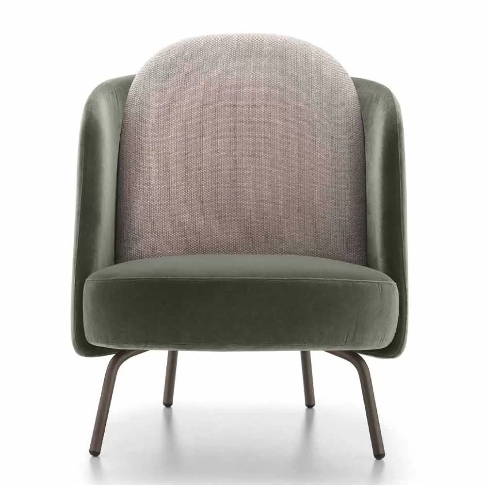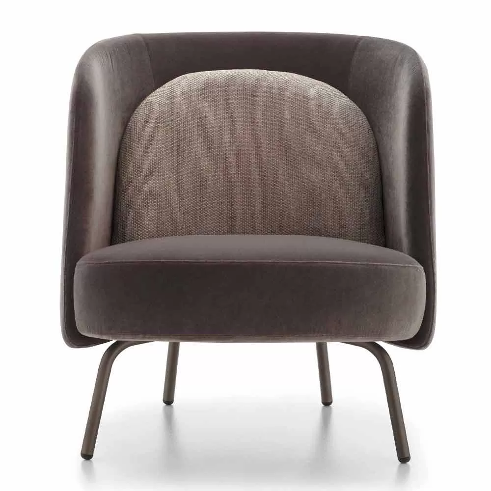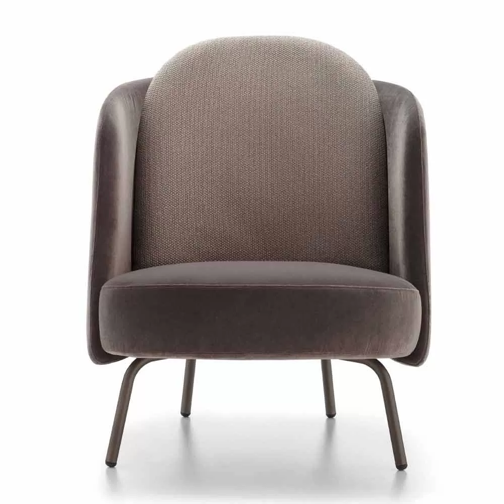 Modern armchair Made in Italy with light brown finish metal feet and internal structure in wooden panels covered in polyurethane foam and Tecnoform and completely removable shell covered in fabric .