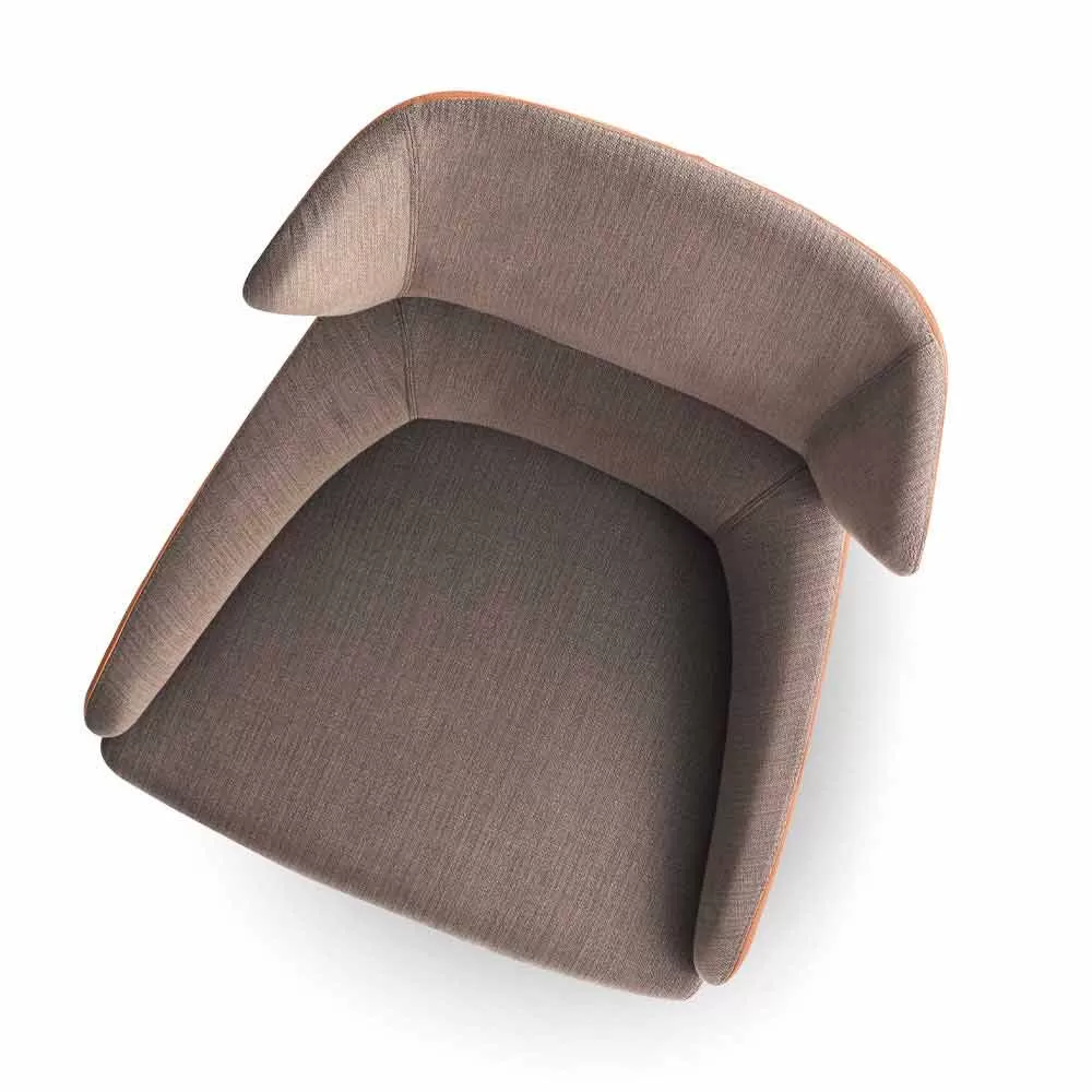 Living room armchair in fabric and leather with swivel base, high quality Made in Italy.