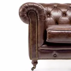 Living room armchair in real dark brown leather , with a classic English style.