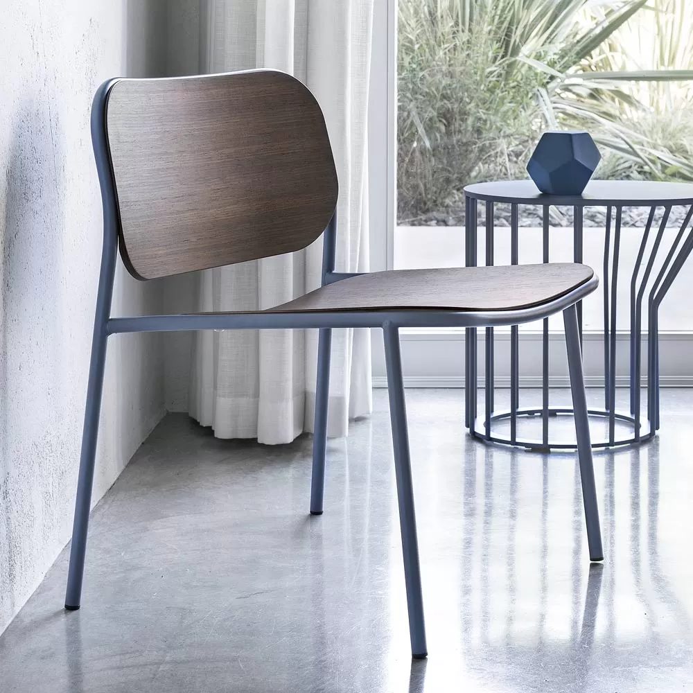 Armchair for living room with stackable structure in painted metal and seat and back in wood . A piece of furniture that comes from a 100% Made in Italy production process through the use of high quality raw materials that offer a solid and resistant result . Its simple aesthetic is punctuated by rounded and sinuous lines that ensure optimal comfort, inspired by the Nordic style typical of the 1950s. The result is a chair with a refined design characterized by the perfect combination of selected materials that makes it capable of completing the surrounding furnishings by creating a vintage atmosphere with a timeless taste.