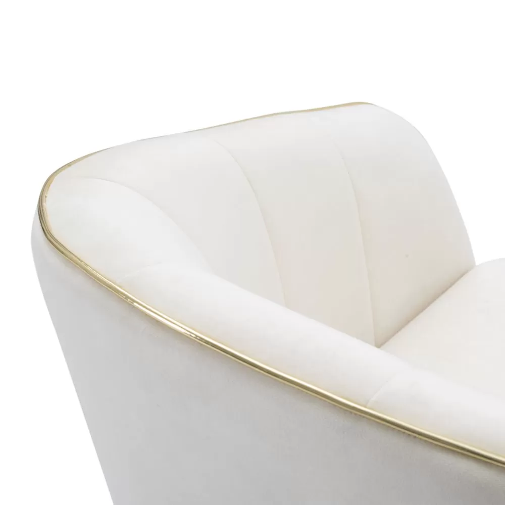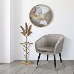 Modern living room armchair with black wooden structure enriched with golden details and seat upholstered in sponge and covered in fabric with golden profiles . A welcoming seat that ensures optimal comfort as well as giving the surrounding environment an exclusive and classy touch. The wonderful combination of finishes and shades of color creates a unique harmony, managing to characterize the entire room thanks to its strong modern personality and its refined character .