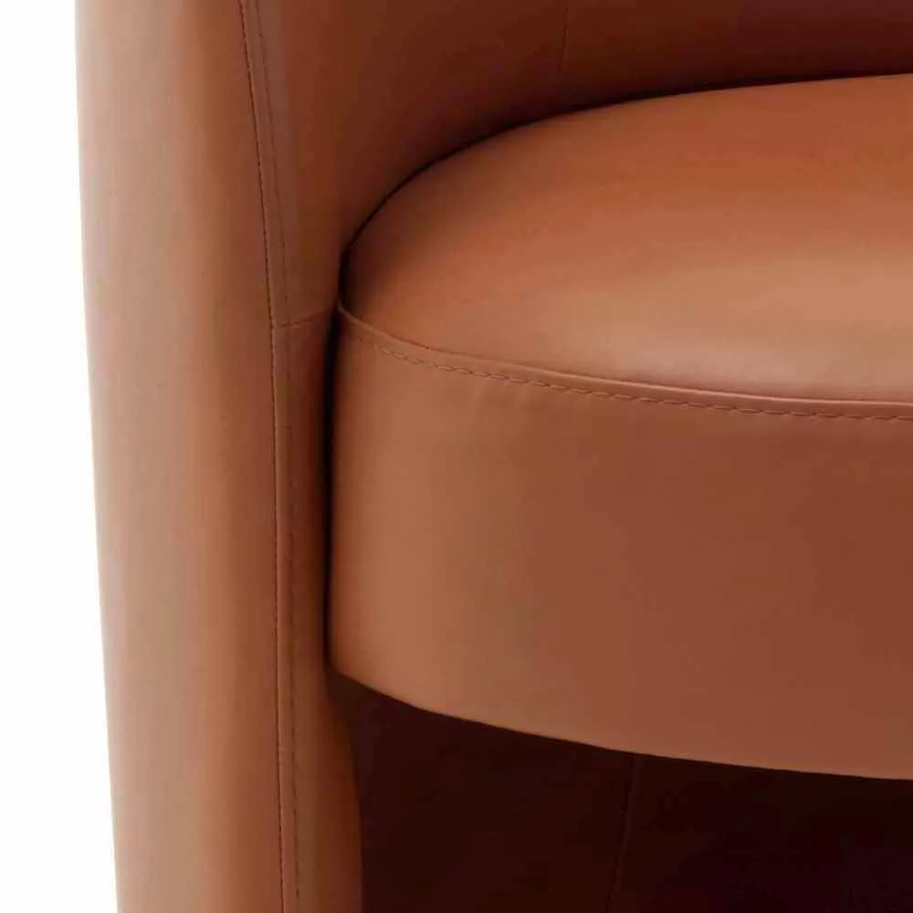 Living room armchair upholstered in leather with wooden base, high quality Made in Italy.