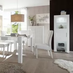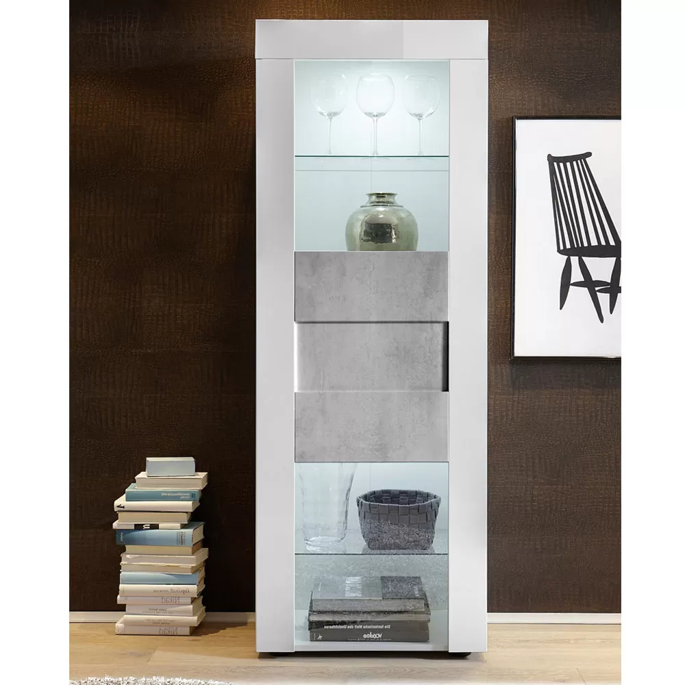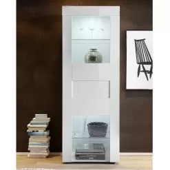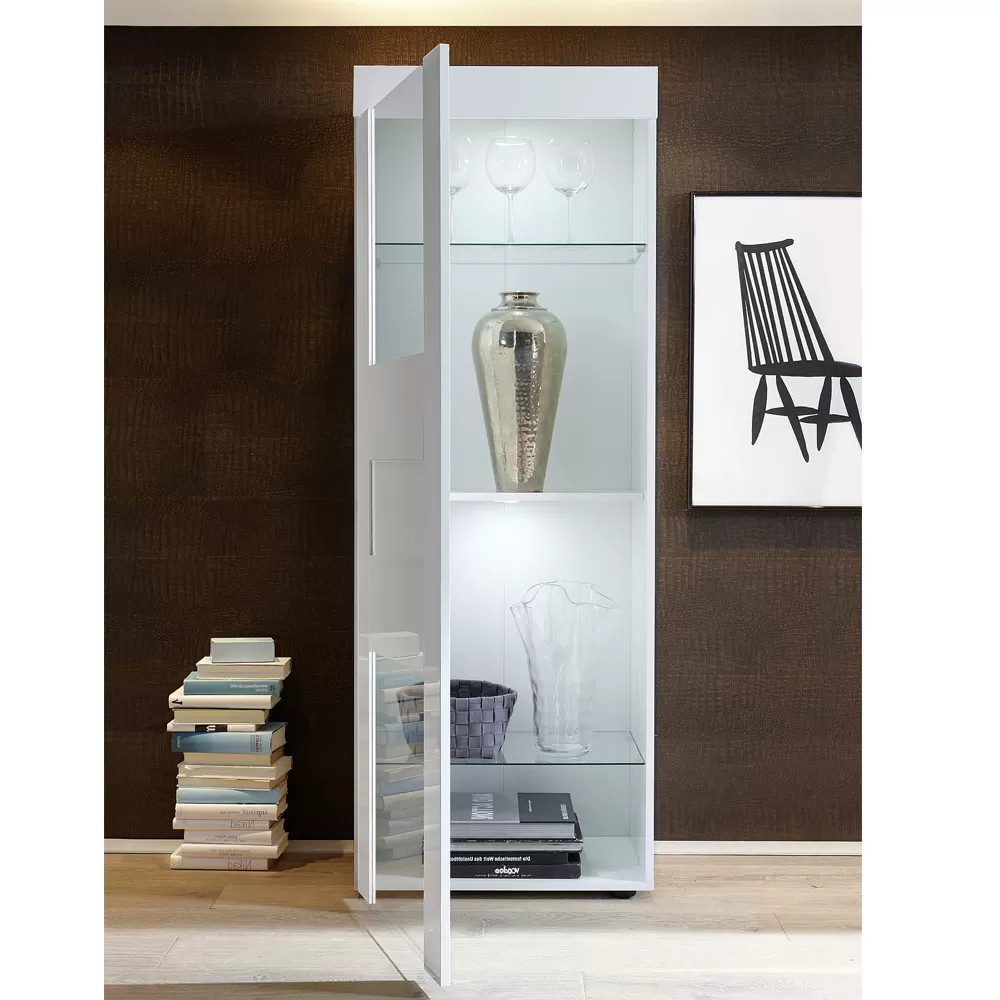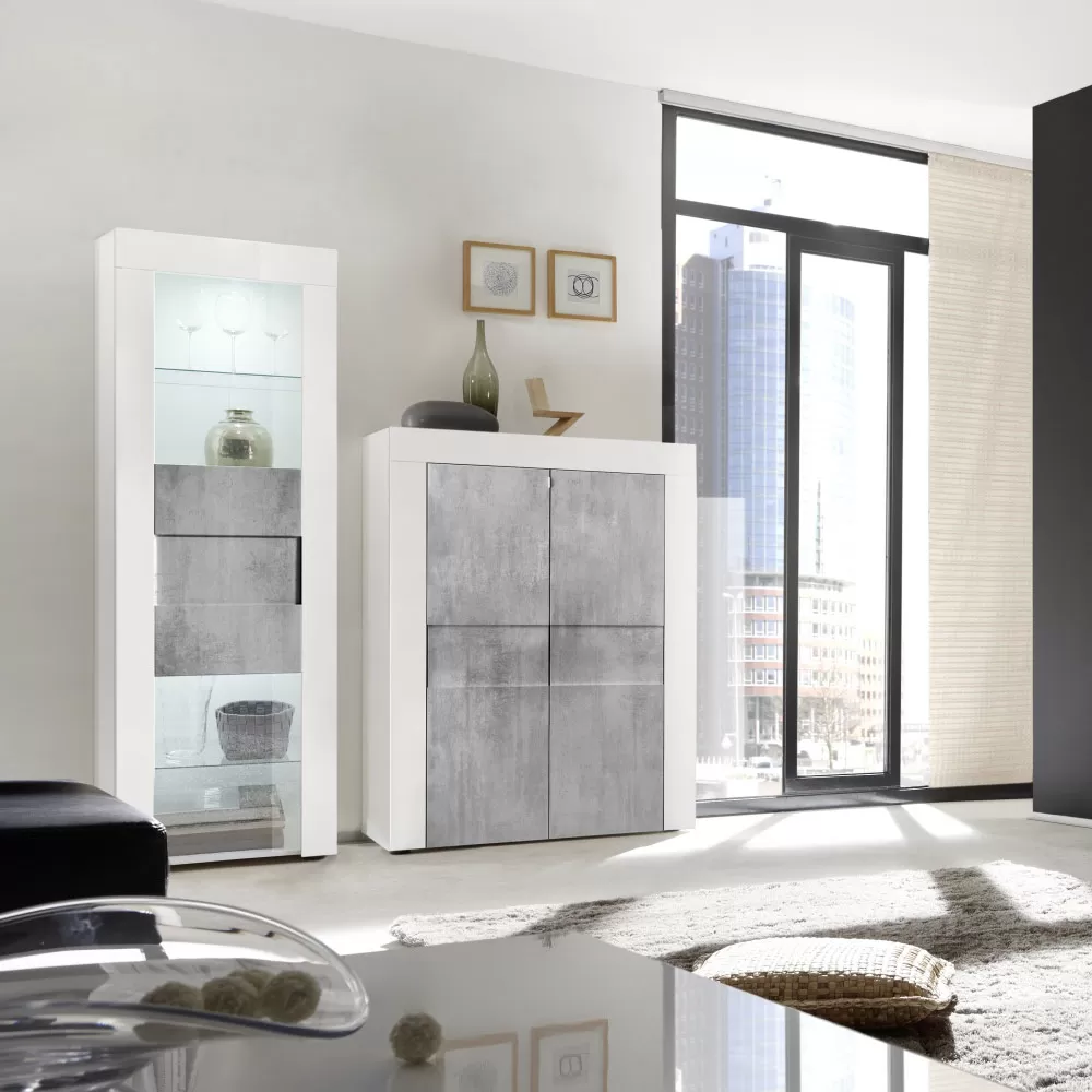 Living room display cabinet entirely made in Italy in melamine-coated chipboard with glass door and 3 internal shelves, 2 of which in glass and one in wood. A piece of furniture with an eclectic and essential style , designed to furnish any living area with a contemporary design with elegance and taste thanks also to the two finishes proposed which are particularly versatile and therefore ideal within any furnishing context.
