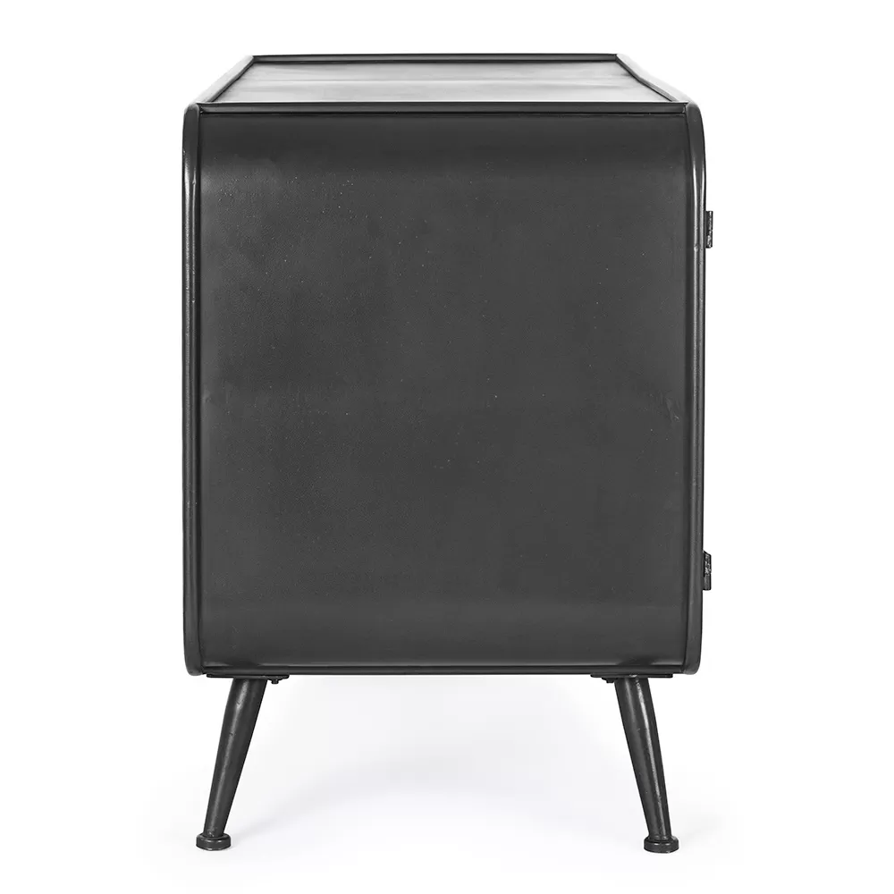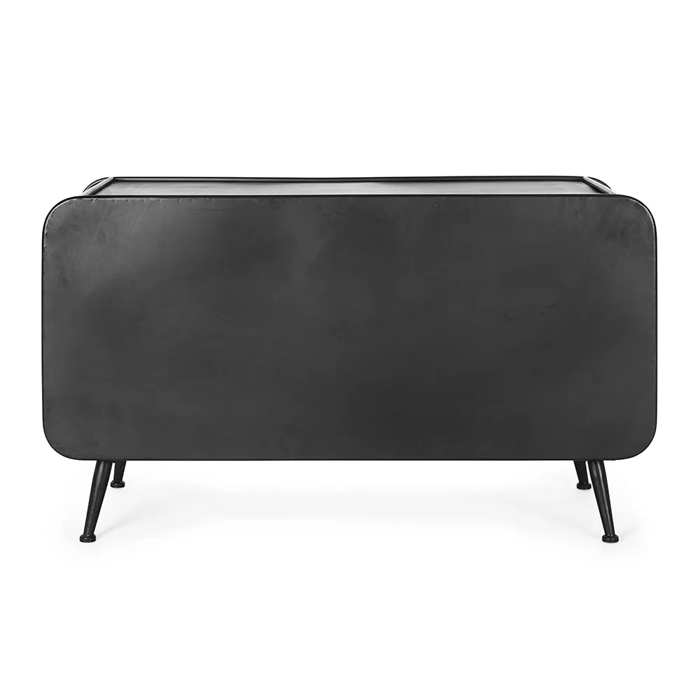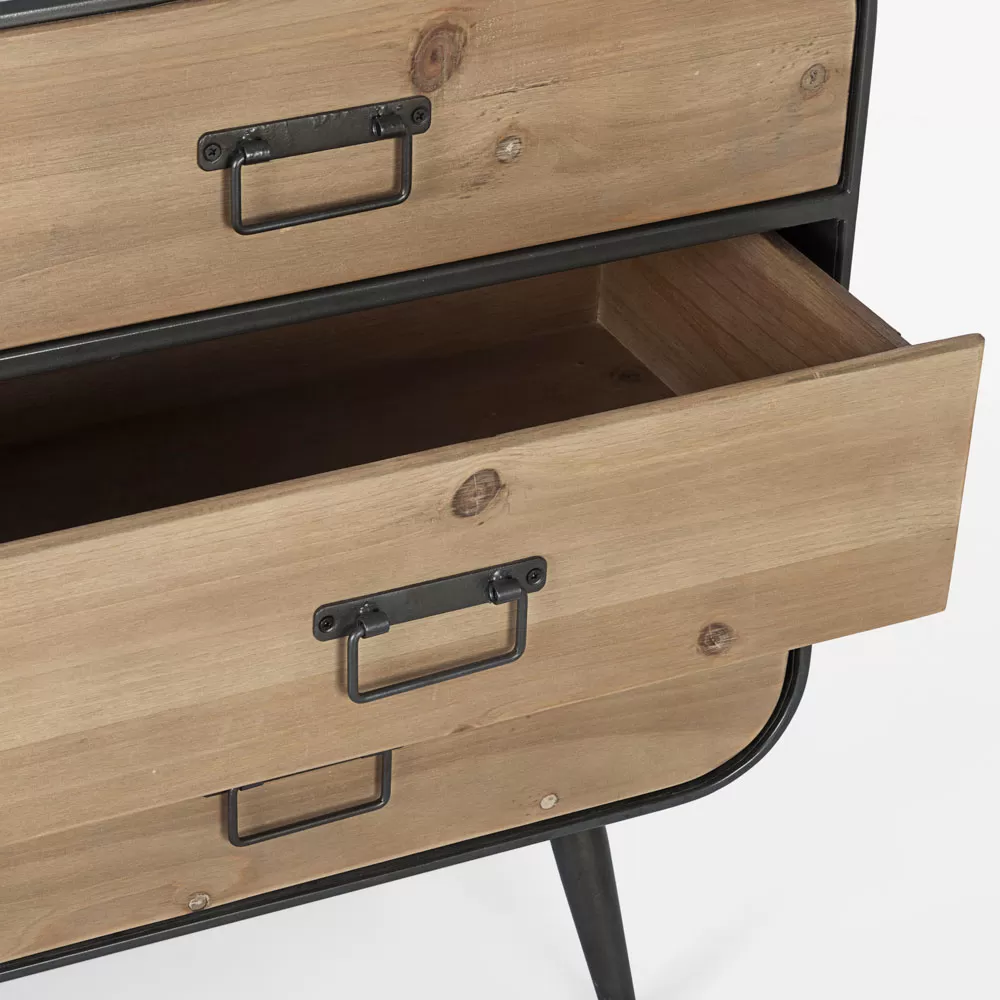 This design sideboard for the living room features an epoxy powder coated steel structure and 3 drawers in fir wood with a wax finish.