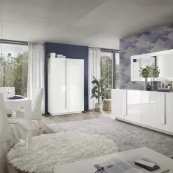 The vertical band in relief that characterizes the essential design of the sideboard is the real strength of the product, managing to enrich the surrounding environment with personality and character and proving to be particularly useful for an easier opening of the doors inside which there are practical shelves ideal for organizing crockery, kitchen utensils or any object of the house thus maintaining order inside the room.