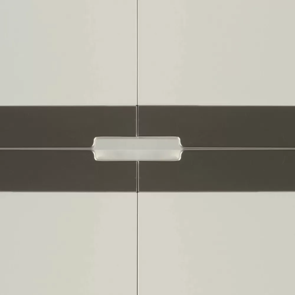 Living room sideboard with a modern style completely made in Italy composed of iron feet in nickel finish and shell in white mdf complete with handle in solid tulipier wood with nickel finish and internal shelves in mdf. The use of simple but resistant materials transform this produced in furniture with great versatility and an attractive and interesting appearance. A versatile and original design conceived to exercise various uses within different areas of the house, completing the furniture in an exclusive way according to your tastes and needs.