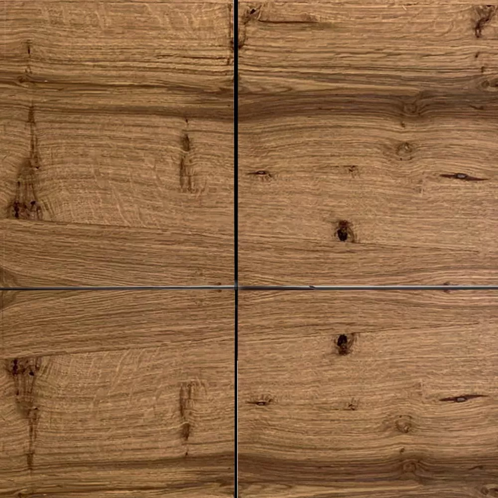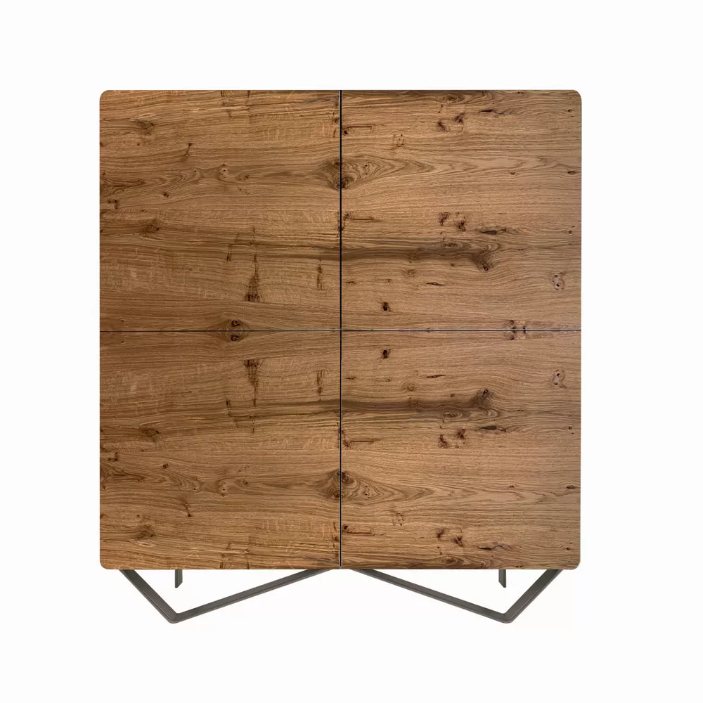 Living room sideboard completely made in Italy composed of a base with 2 iron feet in nickel finish , shell in coal finish mdf , back in solid wood complete with 4 doors in knotty oak blockboard with country oak finish with internal shelves in mdf . The use of simple but resistant materials transforms this product into a piece of furniture with great versatility and an attractive and interesting appearance.