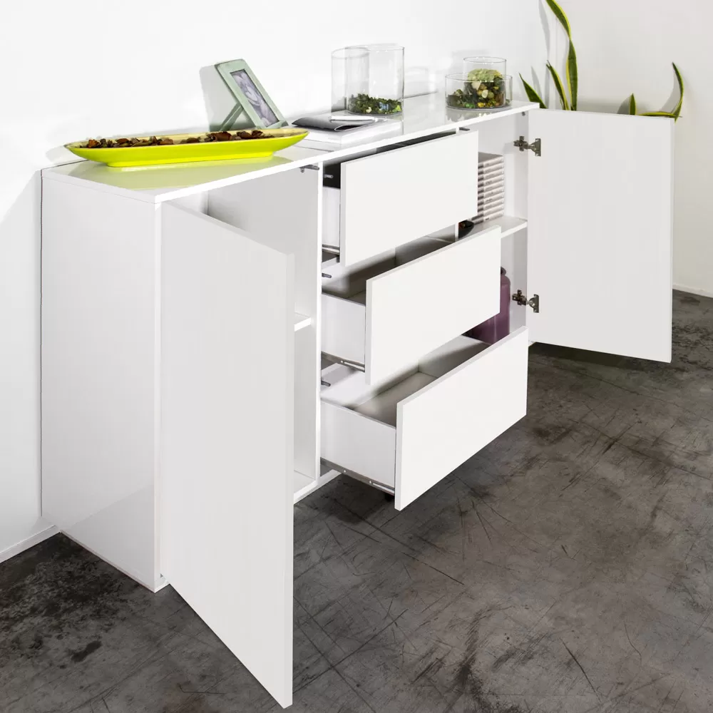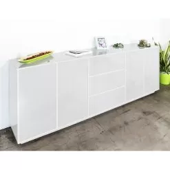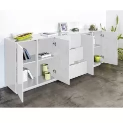 Modern sideboard for living room or kitchen made in Italy with melamine wood structure in simple but elegant tones composed of compartments with double hinged opening which offer an optimal storage space for storing various objects and different shelves that make the product even more functional . Ideal to be placed in the kitchen, living room or entrance area, the compact dimensions of this sideboard allow you to keep order and save space .