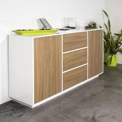 - L 160 x P 41.4 x H 86 cm – 2 doors, 2 compartments and 3 sliding drawers;