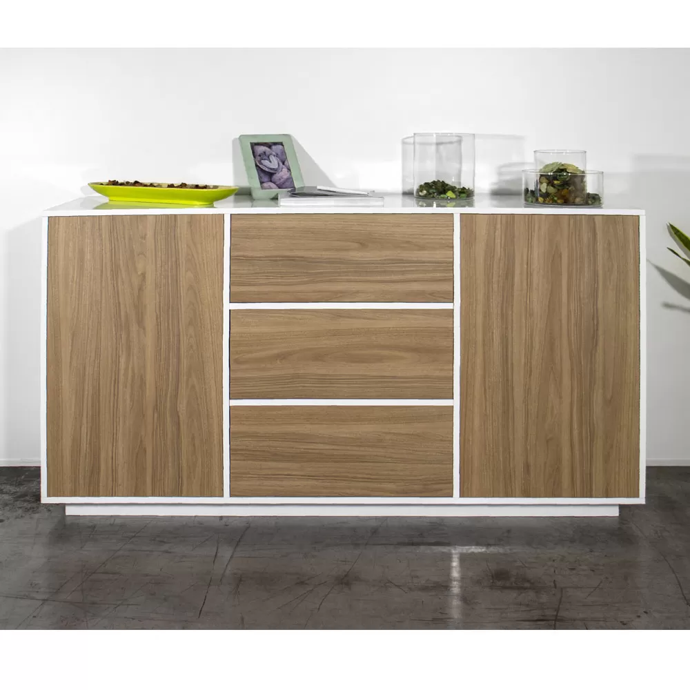Living room sideboard in melamine wood with central drawers Made in Italy.