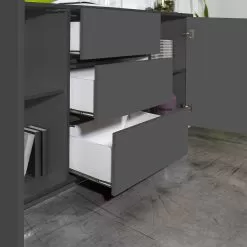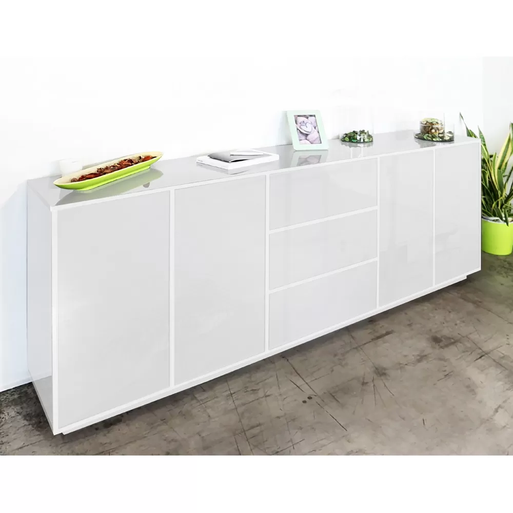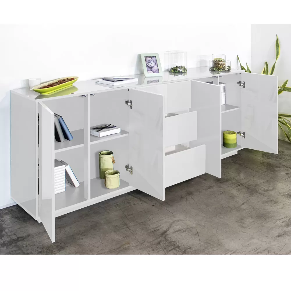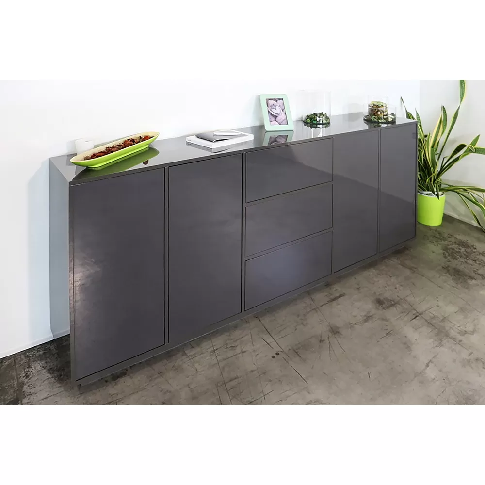 - L 220.1 x D 41.4 x H 86 cm – 4 doors, 4 compartments and 3 sliding drawers.