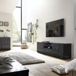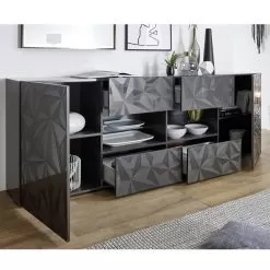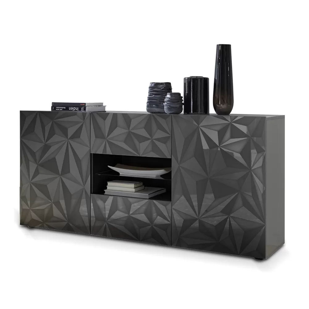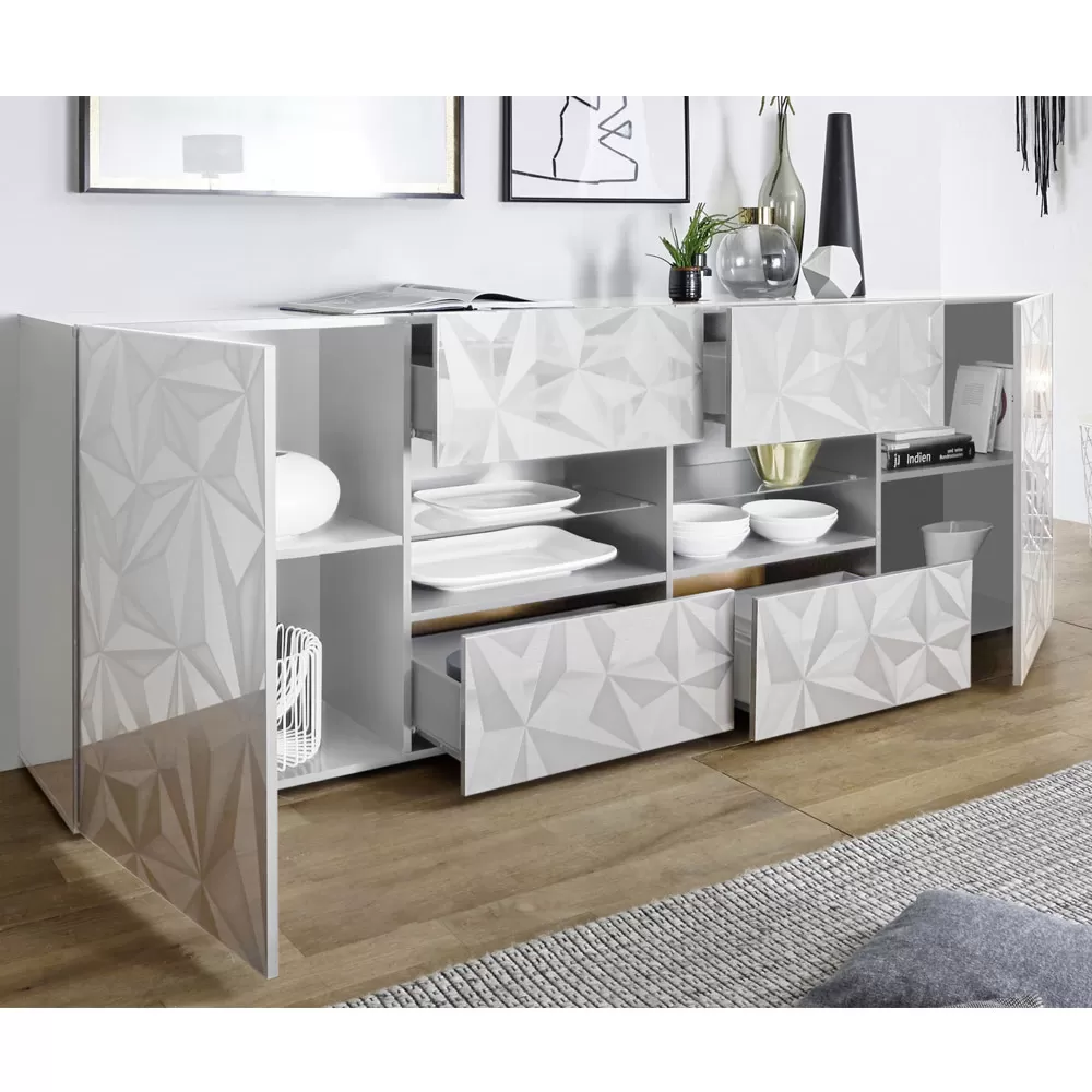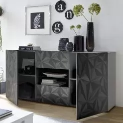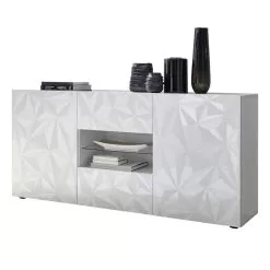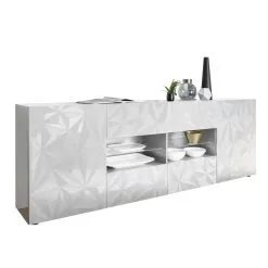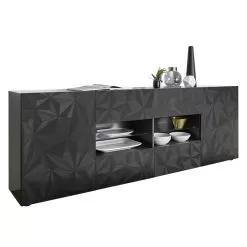 The fronts decorated with a prismatic texture make the final aesthetics of the product interesting and original thanks to the play of light and dark that covers the front surface of the doors and drawers, thus creating a sophisticated and avant-garde result . Its large size and solid structure give the sideboard stability, further emphasizing its high quality .