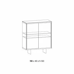 This low cabinet for the living room is made of smoked glass available in two different brushed finishes, bronze or black, for the profile of the sliding door, the handle and the feet of 20 cm height.