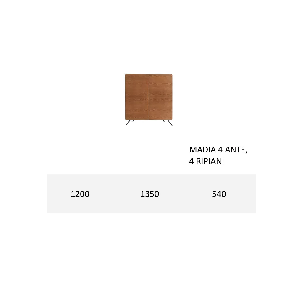Living room sideboard completely made in Italy composed of a base with 4 iron feet in coal finish , shell in mdf with coal finish and back in solid wood complete with 4 doors in stained ash blockboard with 4 shelves in mdf . The use of simple but resistant materials transforms this product into a piece of furniture with great versatility and an attractive and interesting appearance.