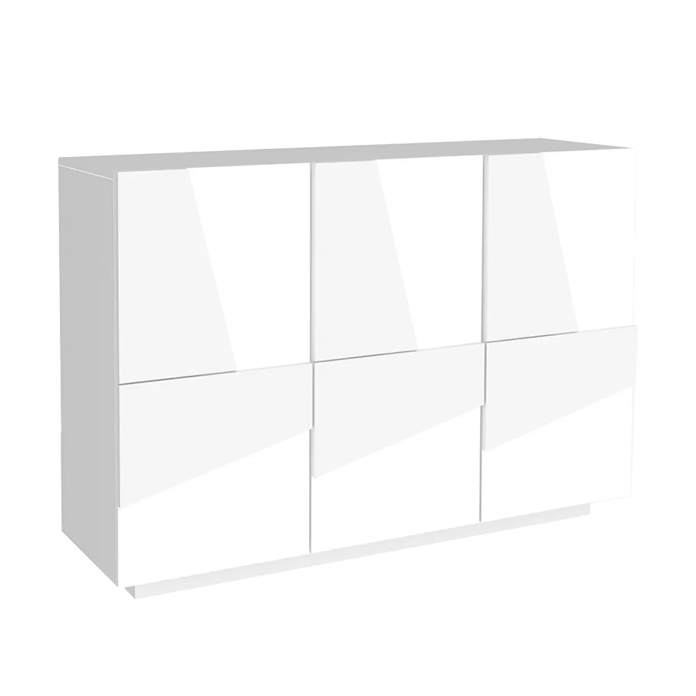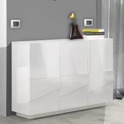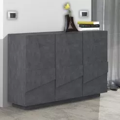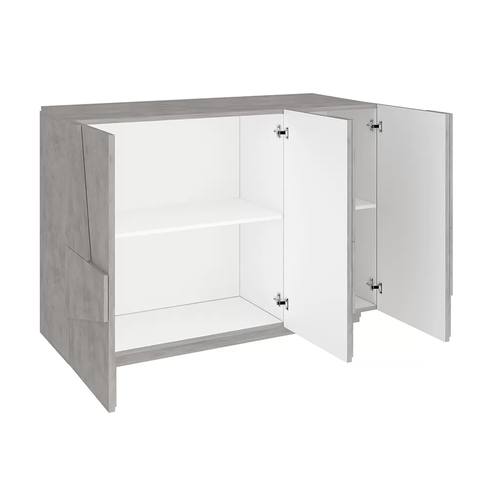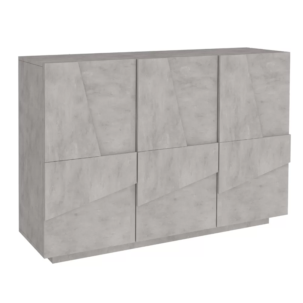 The sideboard is composed of 3 hinged doors made special by the geometric carving in relief on the surface, closing 4 storage compartments , which guarantee large storage space. It is made of melamine and 100% Made in Italy . This product lends itself to completing the decor of any living area thanks to its simple and elegant finishes that give the room a unique and unforgettable touch. The material used guarantees quality and resistance even over time.