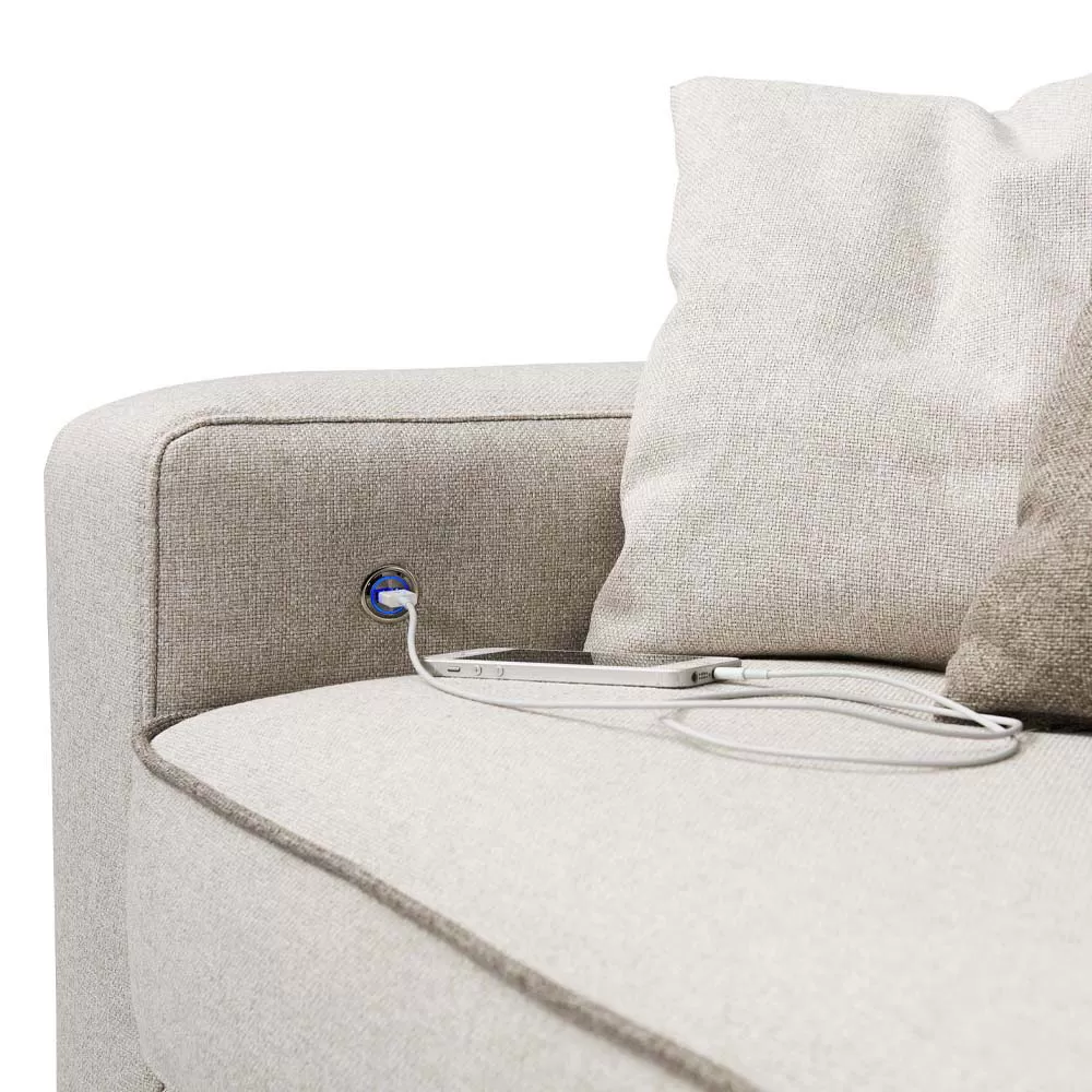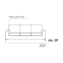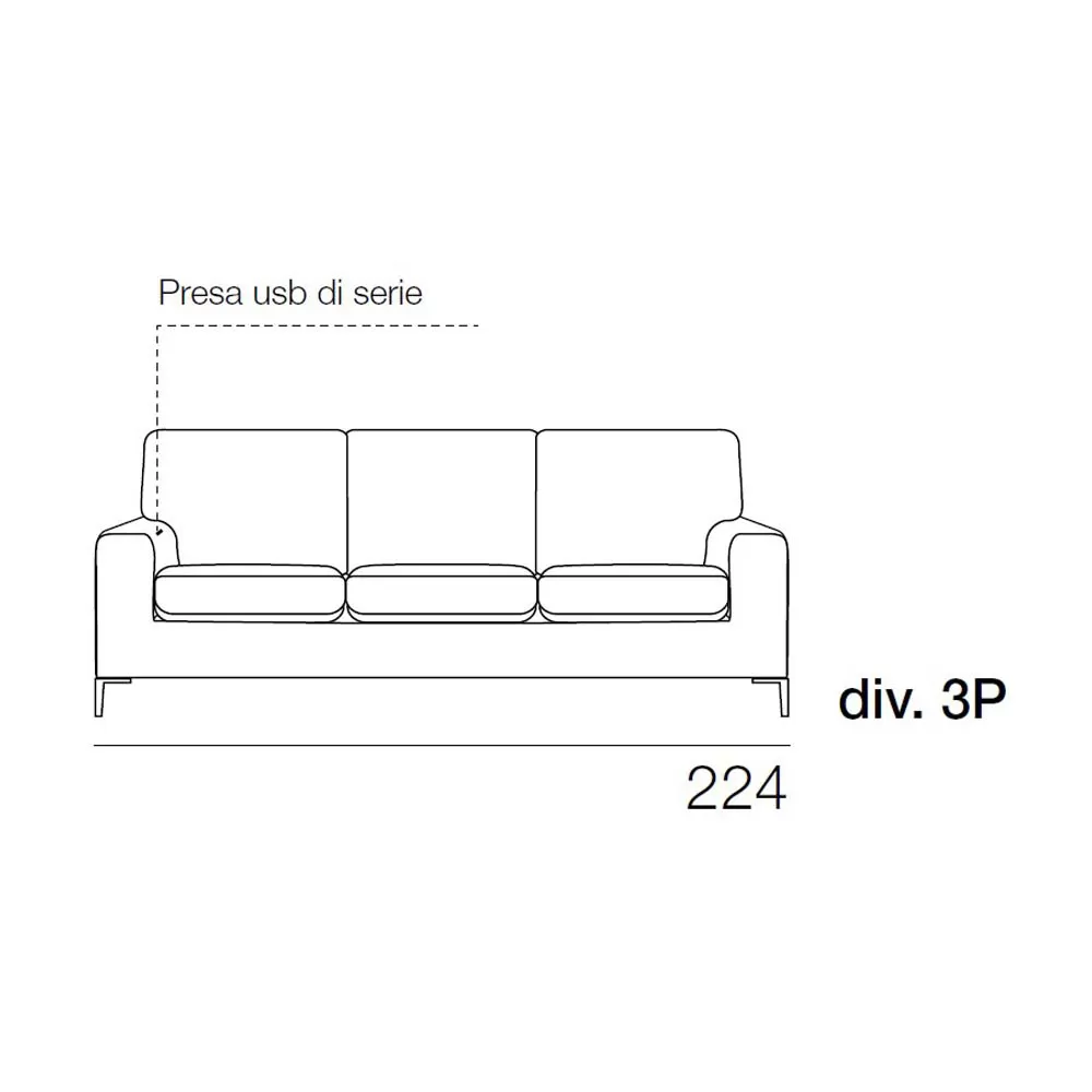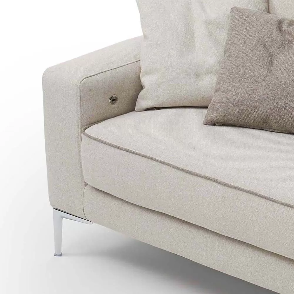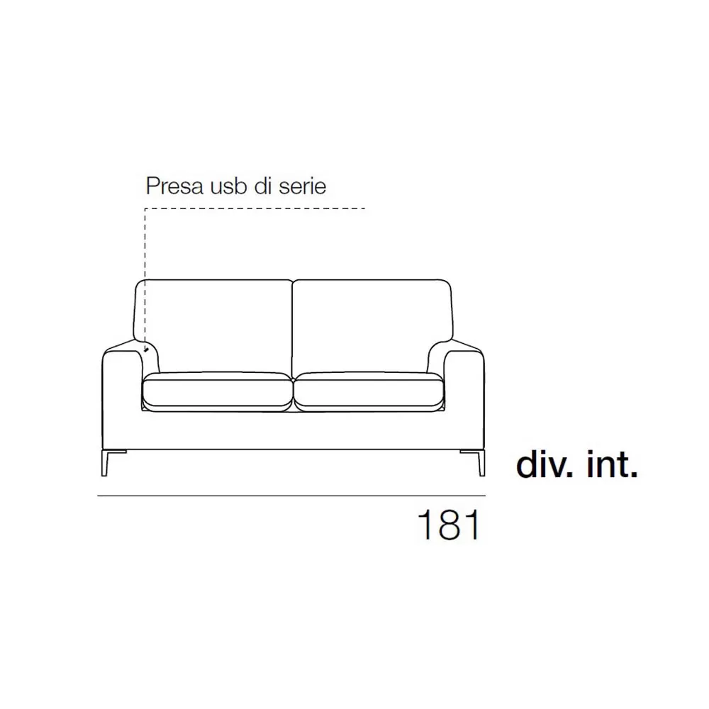 2 or 3 seater sofa entirely made in Italy with removable fabric cover, structure in fir wood and chipboard with polyurethane padding, covered in bonded protective fabric and feet in chromed metal (h 15 cm). The spring system uses interwoven elastic bands while the seat and back cushions are made of polyurethane foam . The peculiarity of this sofa is the USB socket positioned on the inner side of the left armrest, ideal for charging your devices comfortably.