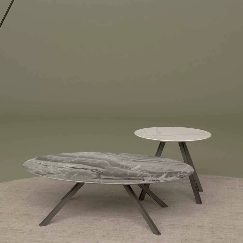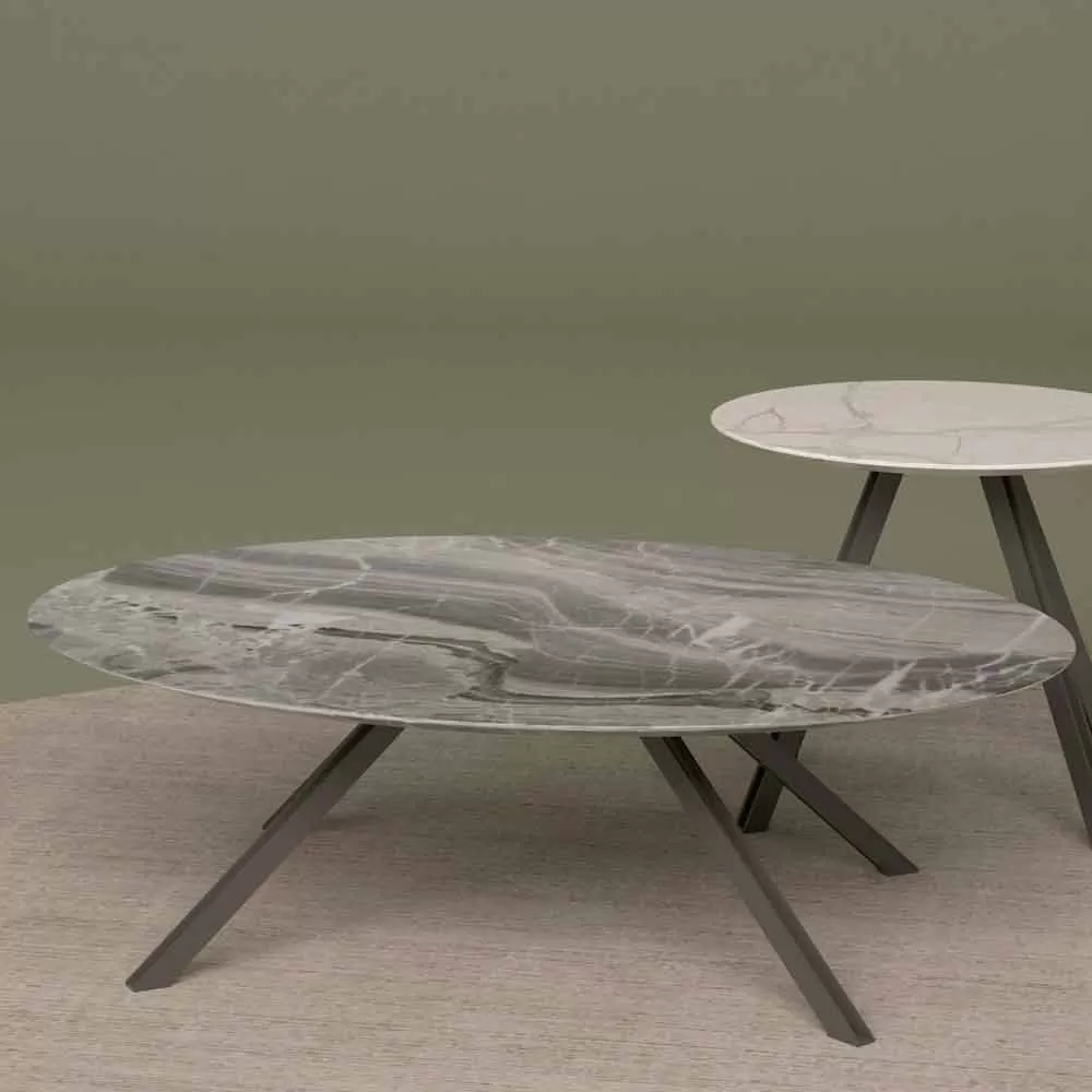 Smoking table with Calacatta or Orobico Gray marble top and anthracite gray metal base, handcrafted in Italy.