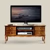Mango wood structure with hand inlaid decorations, MDF backrest. Finishing based on nitrocellulose. Brass handles.