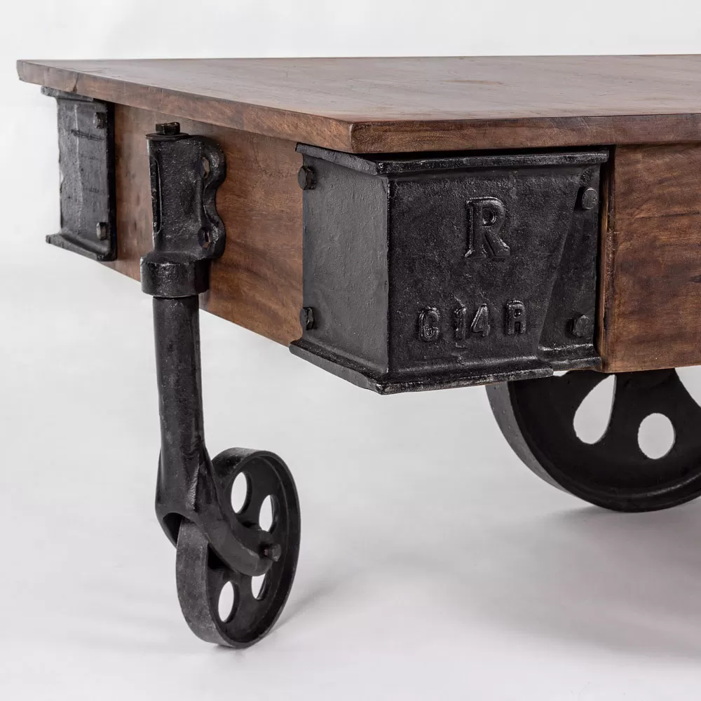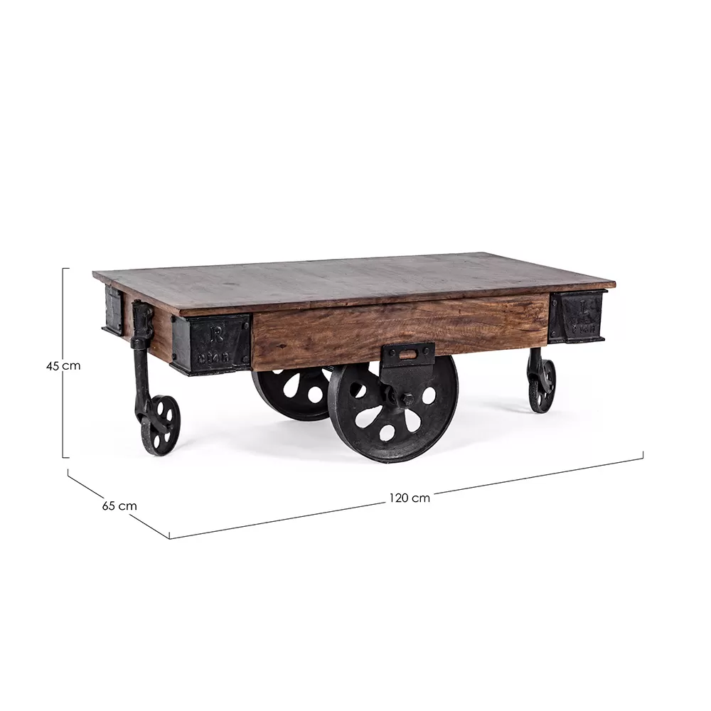 Low Coffee Table In Mango Wood And Steel With Wheels – Minnie