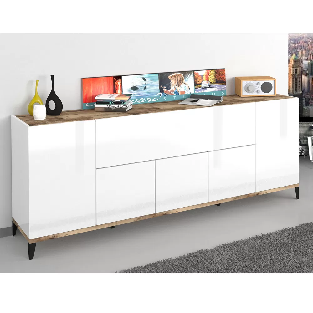 The white or wood finish front, combined with the two finishes that cover the top and bottom of the product, captures the attention, creating a chic and elegant effect for a simple and interesting play of colors. It is a piece of furniture with a minimal design that combines an elegant aesthetic with a wide usefulness .