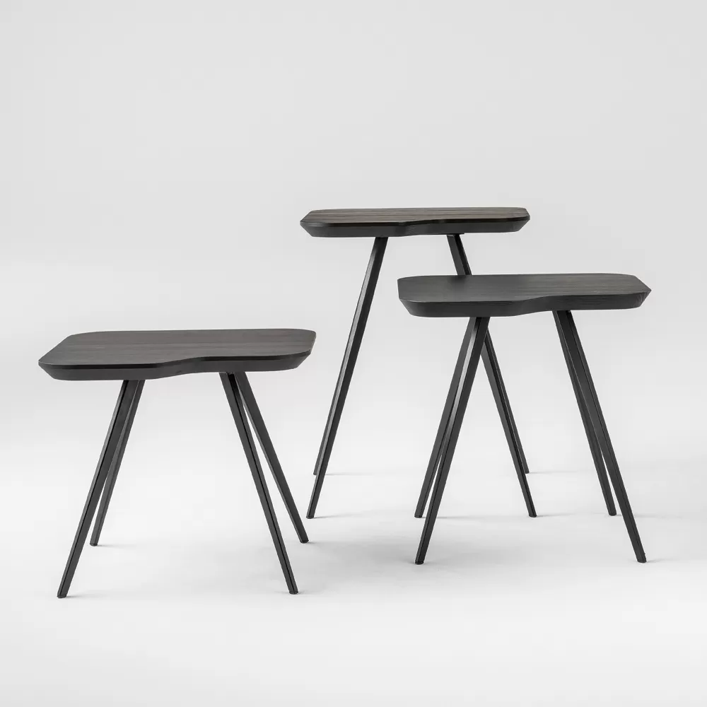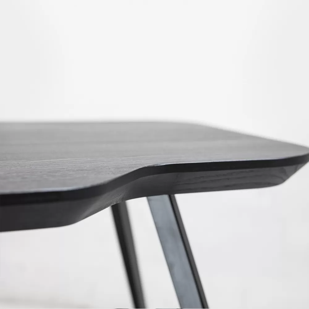 Coffee table with black painted metal base and black lacquered solid ash wood top made in Italy . Legs with a light design that create momentum meet the simple and minimal top with a particular shape with rounded corners to give life to an original table top designed and created to enrich the furniture of your living room in an original way. Its dimensions make it perfect as a practical solution to be placed next to your sofa or to form innovative compositions by playing on different joints and heights for an avant-garde creation. The result is a coffee table with a strong modern personality that contains all the essential functional properties for a quality product.