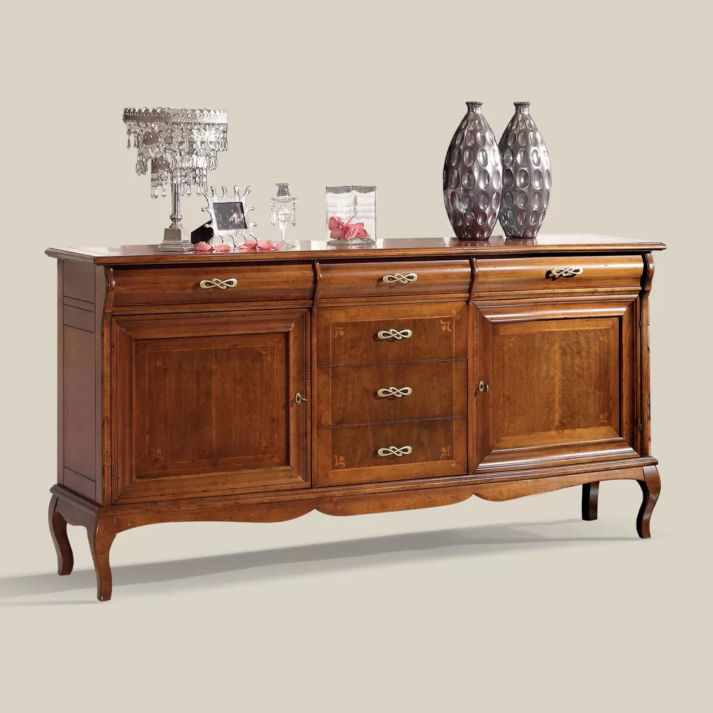 Luxury living room sideboard in classic style Made in Italy wood.