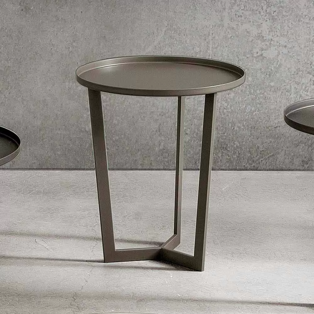 Coffee table with round top and epoxy powder coated metal base. Made through a 100% Made in Italy process with high quality raw materials , this complement represents a perfect compromise between functionality and design , offering an ideal solution for those who love to enrich the style of their living spaces with a touch of discreet and refined luxury . Its aesthetics is characterized by simplicity and essential lines , elements that make it particularly versatile, allowing it to become part of any furnishing context, always resulting in perfect harmony with the accessories that surround it. This is also possible thanks to the marvelous finishes proposed which give the coffee table all its exclusive and refined personality . Ideal as a practical support surface in your living room, it manages to represent at the same time a wonderful decorative element capable of completing and enriching the environment by creating a welcoming and classy atmosphere .