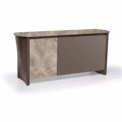 Design sideboard with wooden structure and details in polished marble effect stoneware, high quality Made in Italy product.