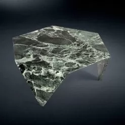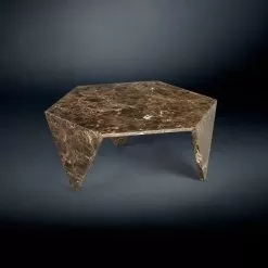 Ruche is a sturdy coffee table, characterised by an original and modern design. This special coffee table is made from marble and is available in four different finishings: Verde Alpi, Emperor Dark, Bianco Calacatta and Nero Marquinia. Hexagonal coffee table with three legs.