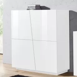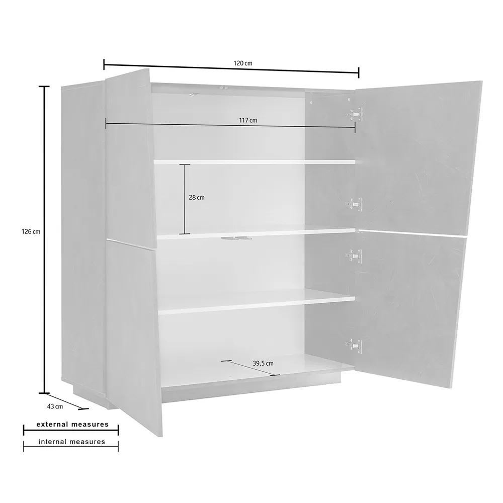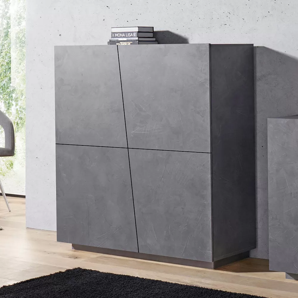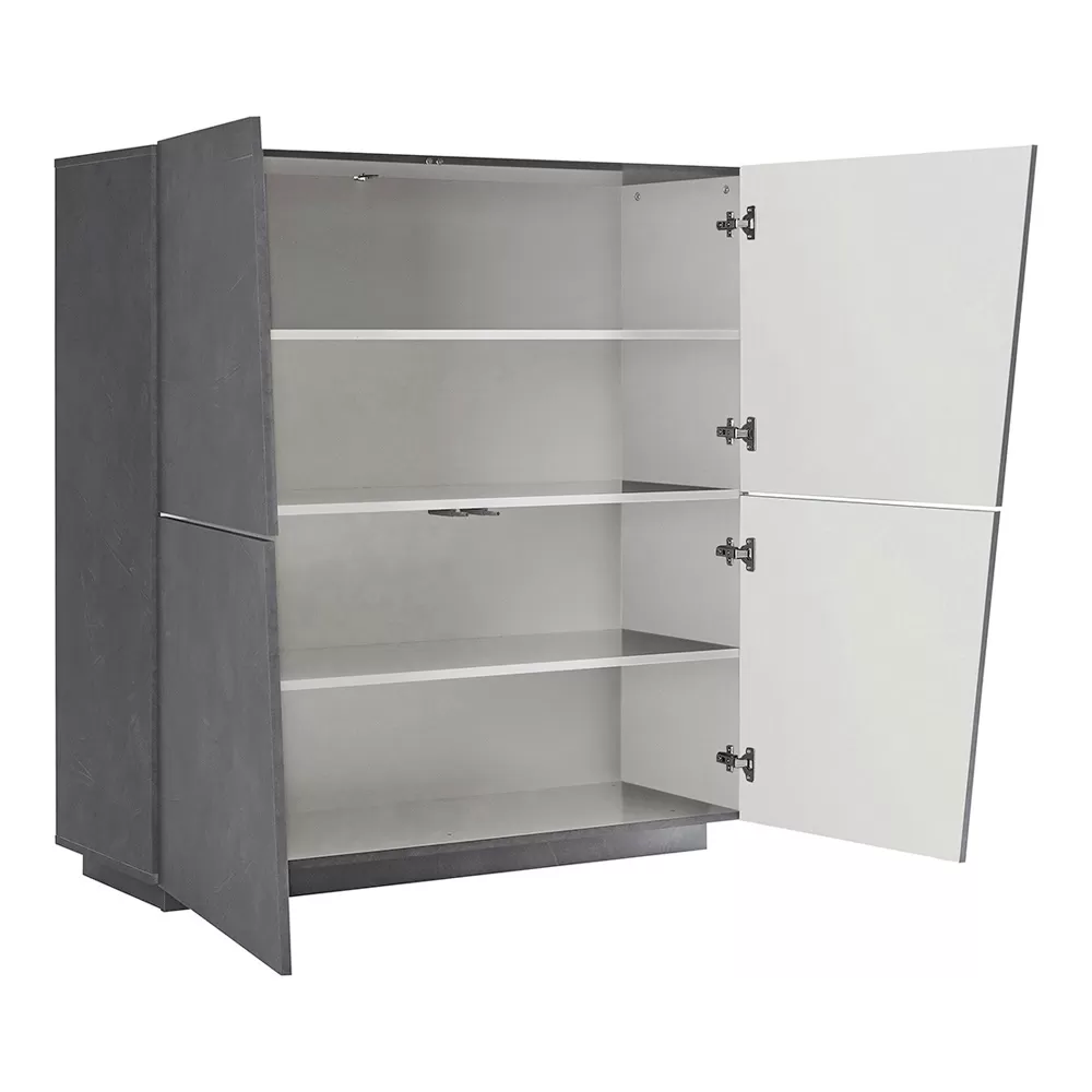 The sideboard is made up of 4 hinged doors , closing 4 storage compartments , which guarantee great storage space. It is made of melamine and 100% Made in Italy . This product lends itself to completing the decor of any living area thanks to its simple and elegant finishes that give the room a unique and unforgettable touch. The material used guarantees quality and resistance even over time.