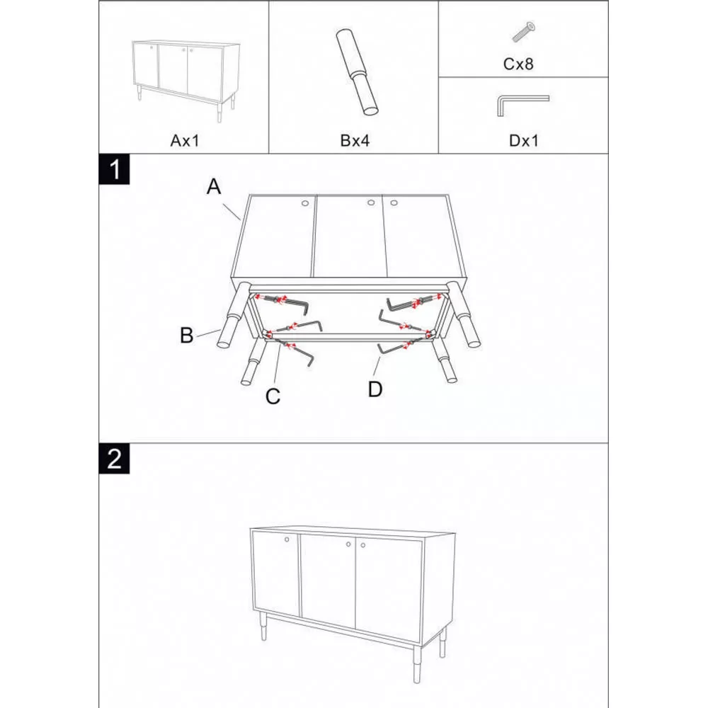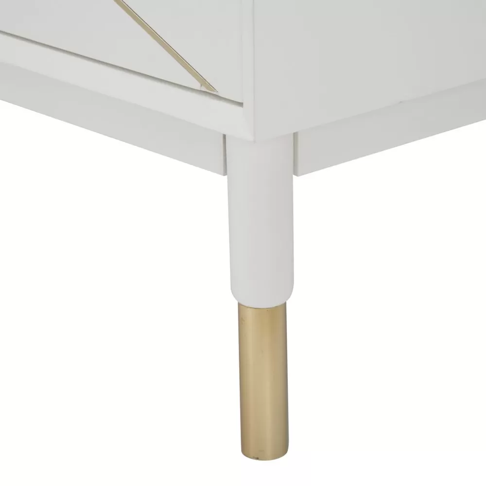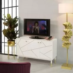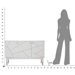 Sideboard made of white painted mdf with gold-finish iron feet that reflect the decorations present on the entire structure. This complement has three doors that make it ideal for organizing your spaces within the living area or the sleeping area. The contrast between the white finish and the golden decorations increases its uniqueness, enriching the aesthetics of the product with elegance and modern personality .