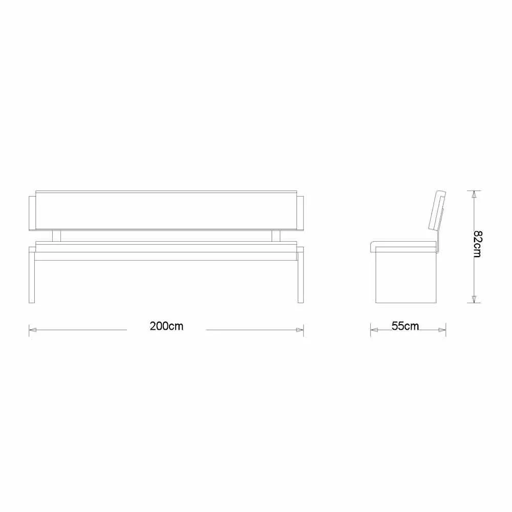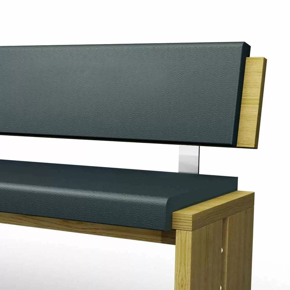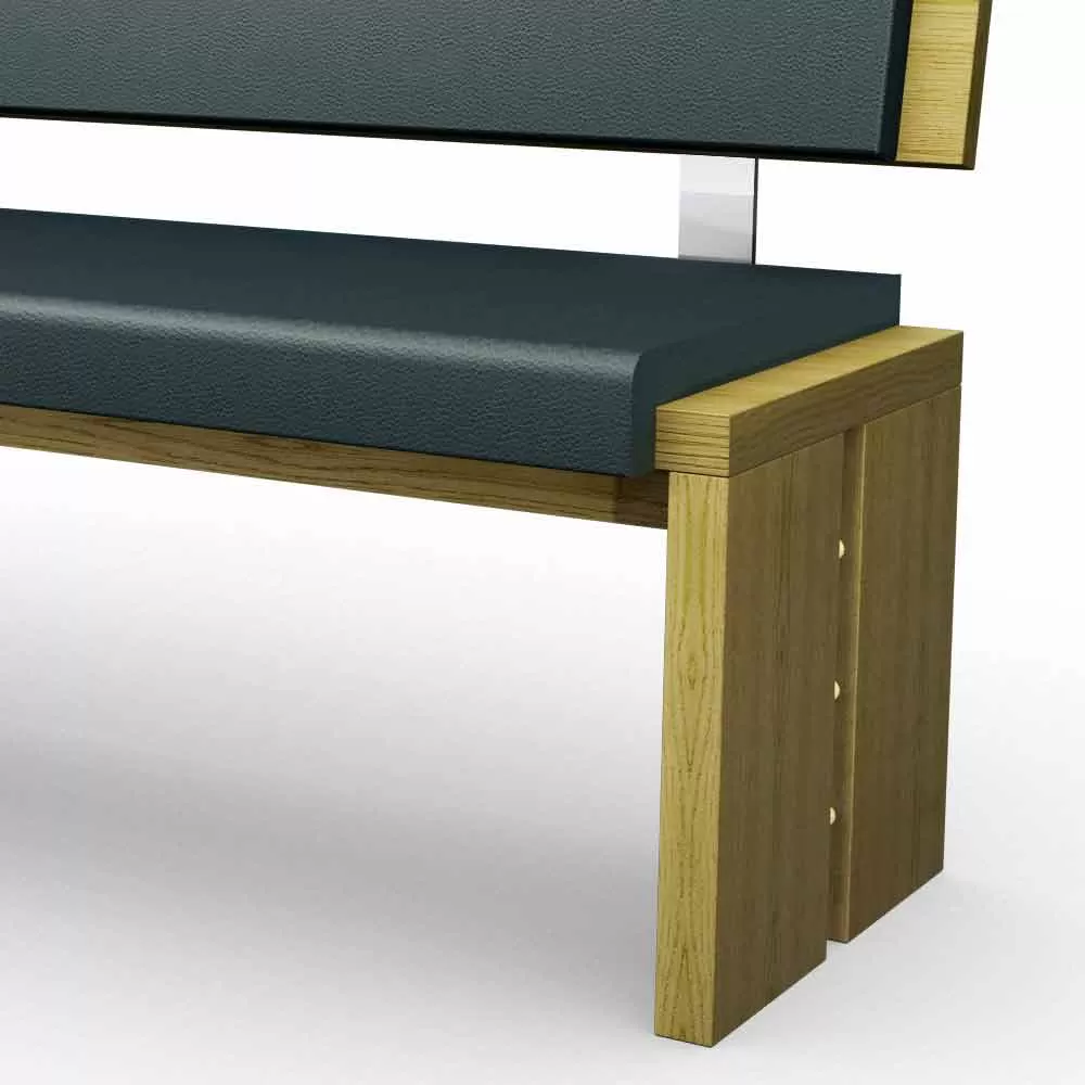 The linear Candy bench combines functionality and design. The steel, with the tubular inserts of the characteristic legs, and with the plate that joins back and seat, becomes the protagonist along with the oak wood. The seat is padded and covered in black eco-leather. The slightly inclined backrest increases the comfort of the seat.